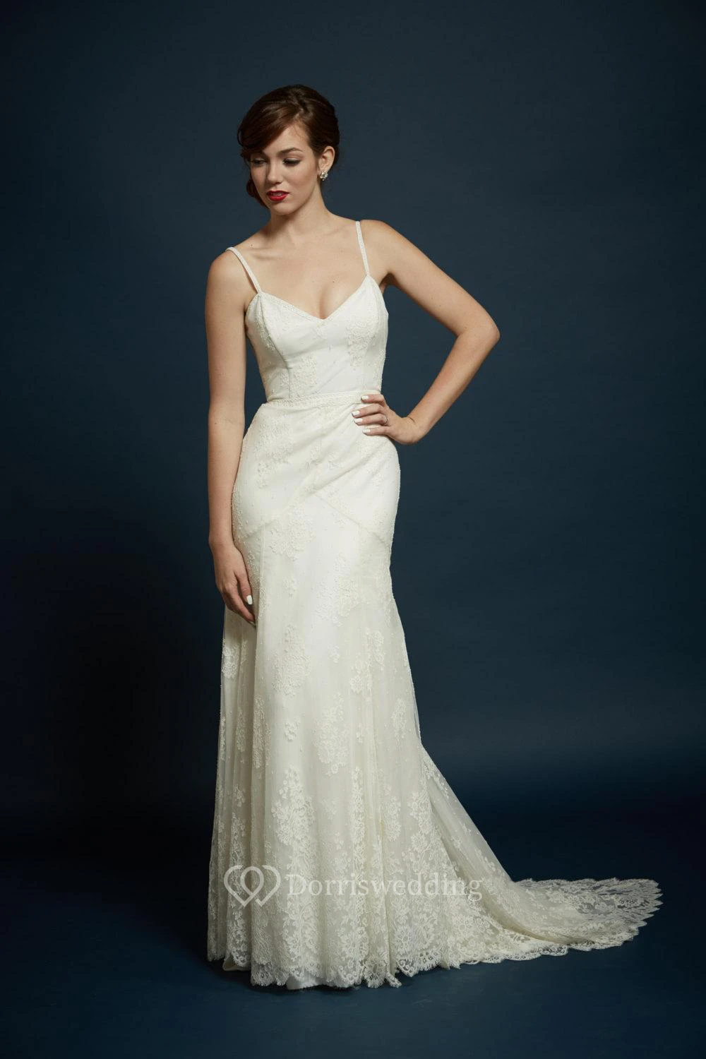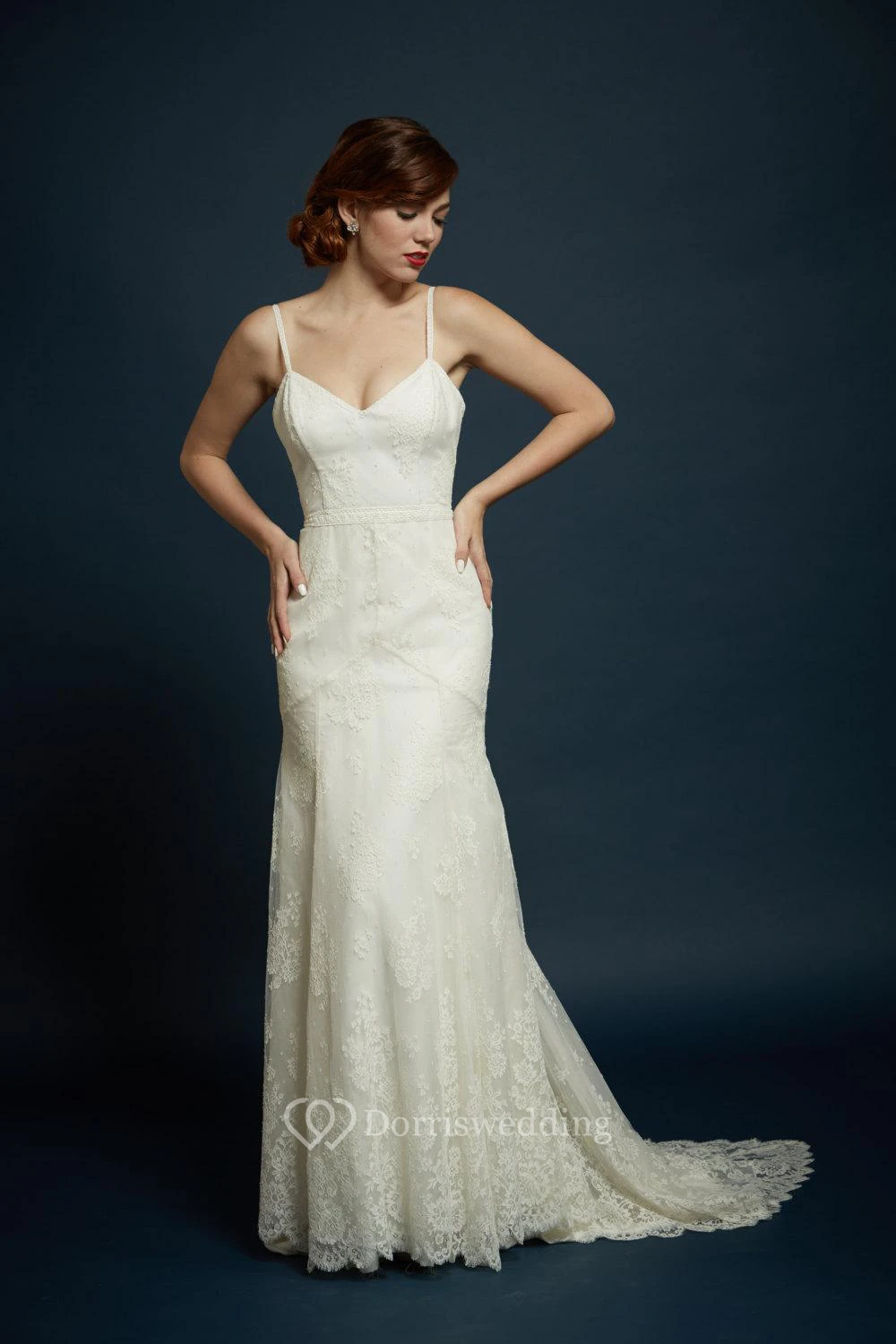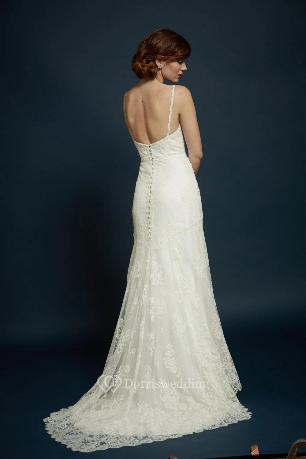 The spaghetti straps lace wedding dress is so nice. Shipped and received with plenty of time before wedding. I can not waiting to wear it.