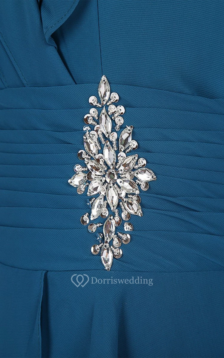 V-neck Tiered Chiffon A-line Gown With Crystal Detail