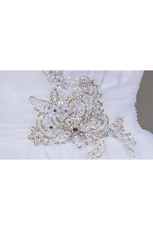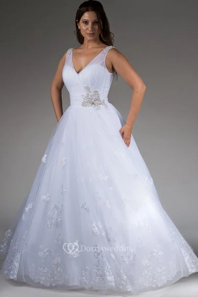 V Neck Tulle Bridal Ball Gown With Lace And Beaded Bandage