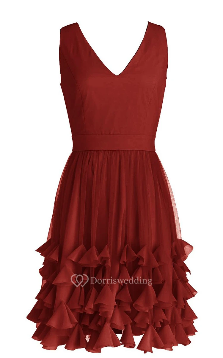 V-neckline Bridal Dress With Ruffled Skirt