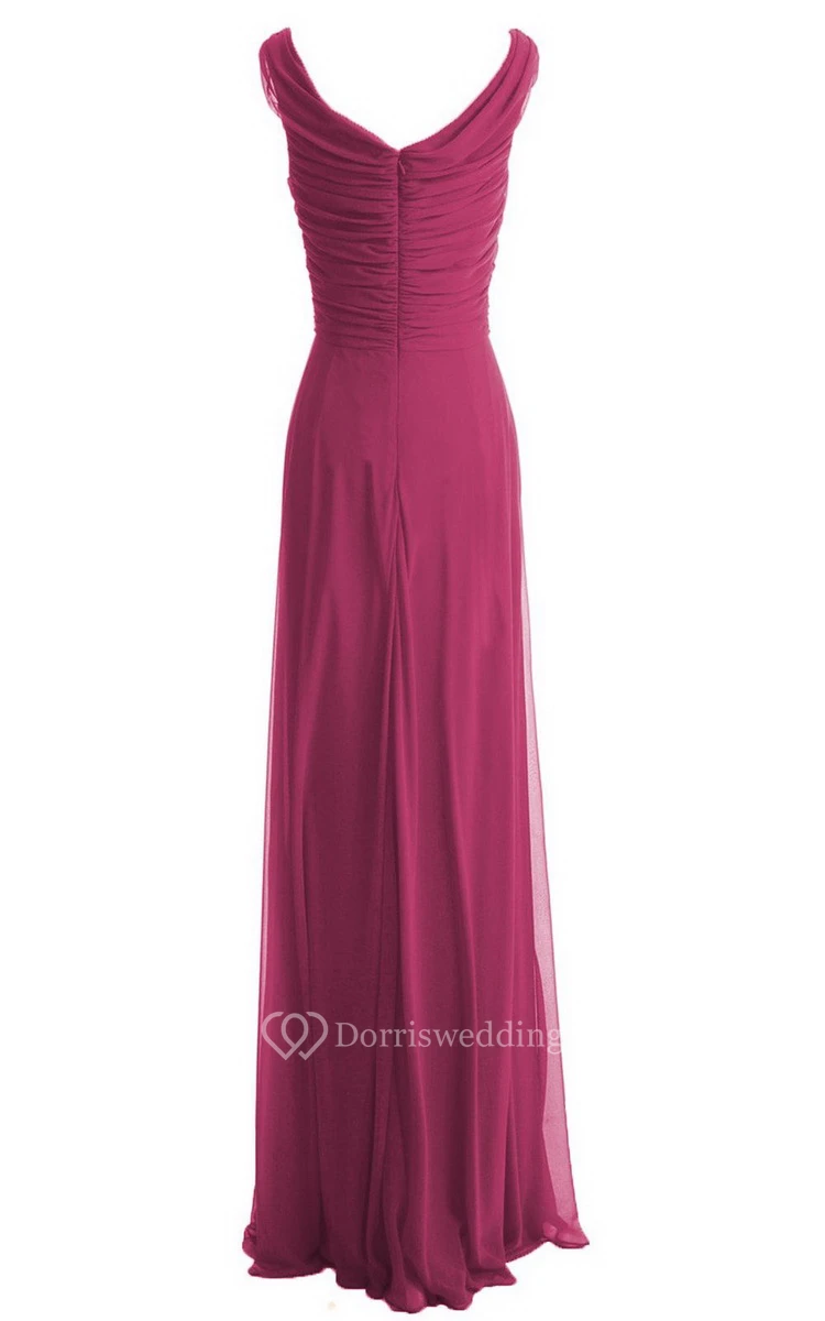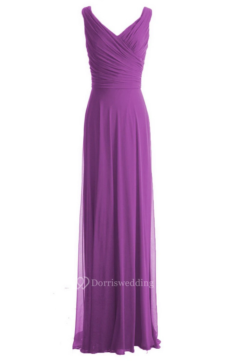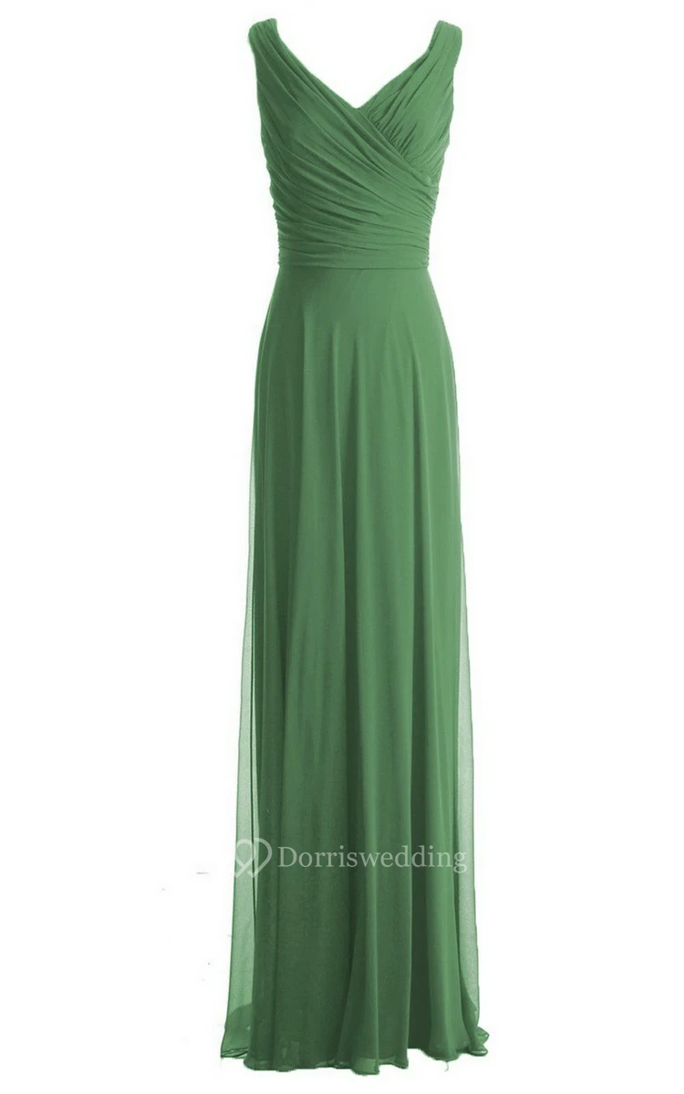V-neckline Floor-length Dress With Zipper Back