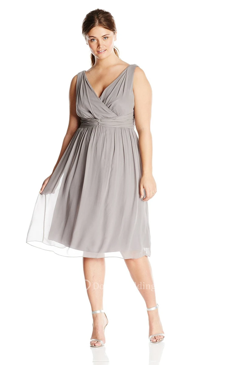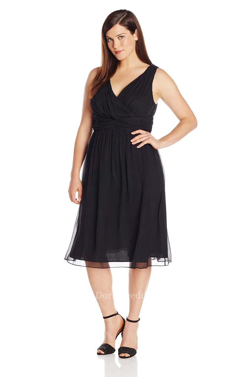 V-neckline Knee-length Chiffon Dress With Basque Waist