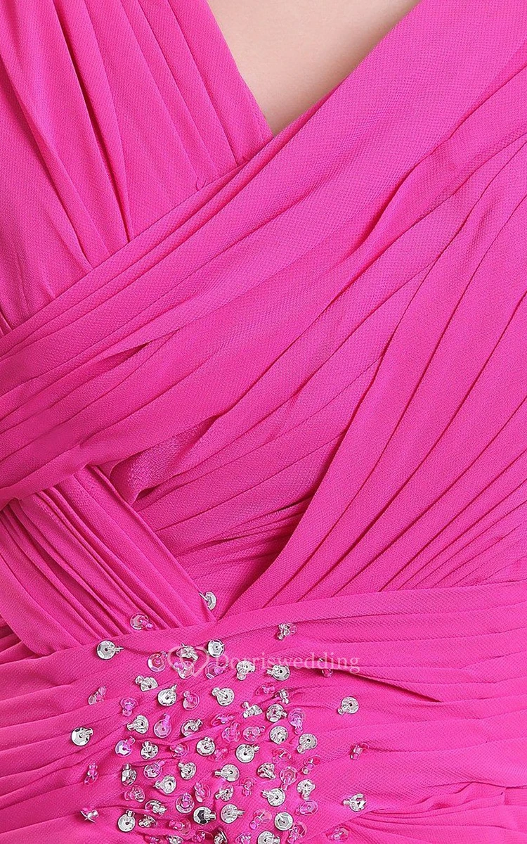 V-neckline Sweep Train With Pleat and Beading