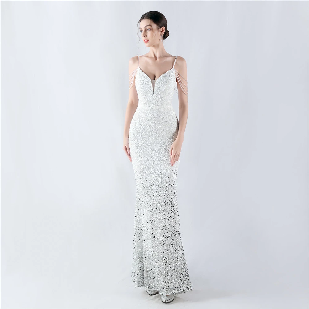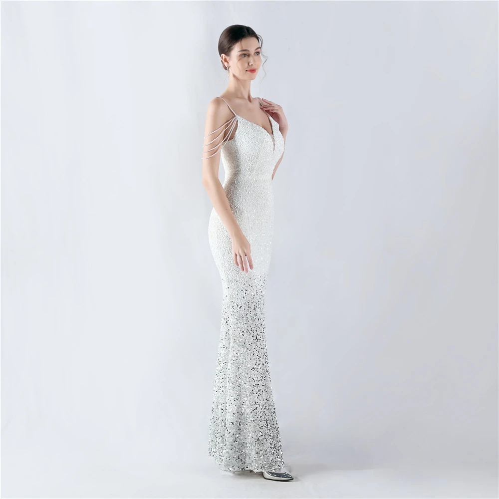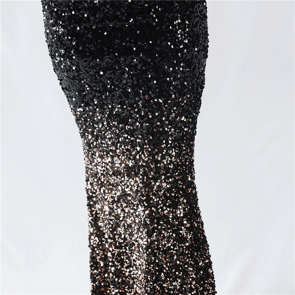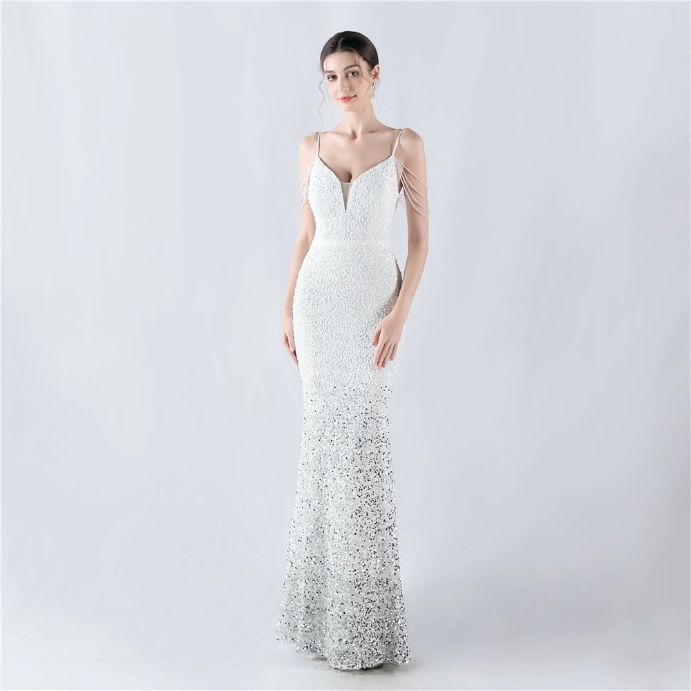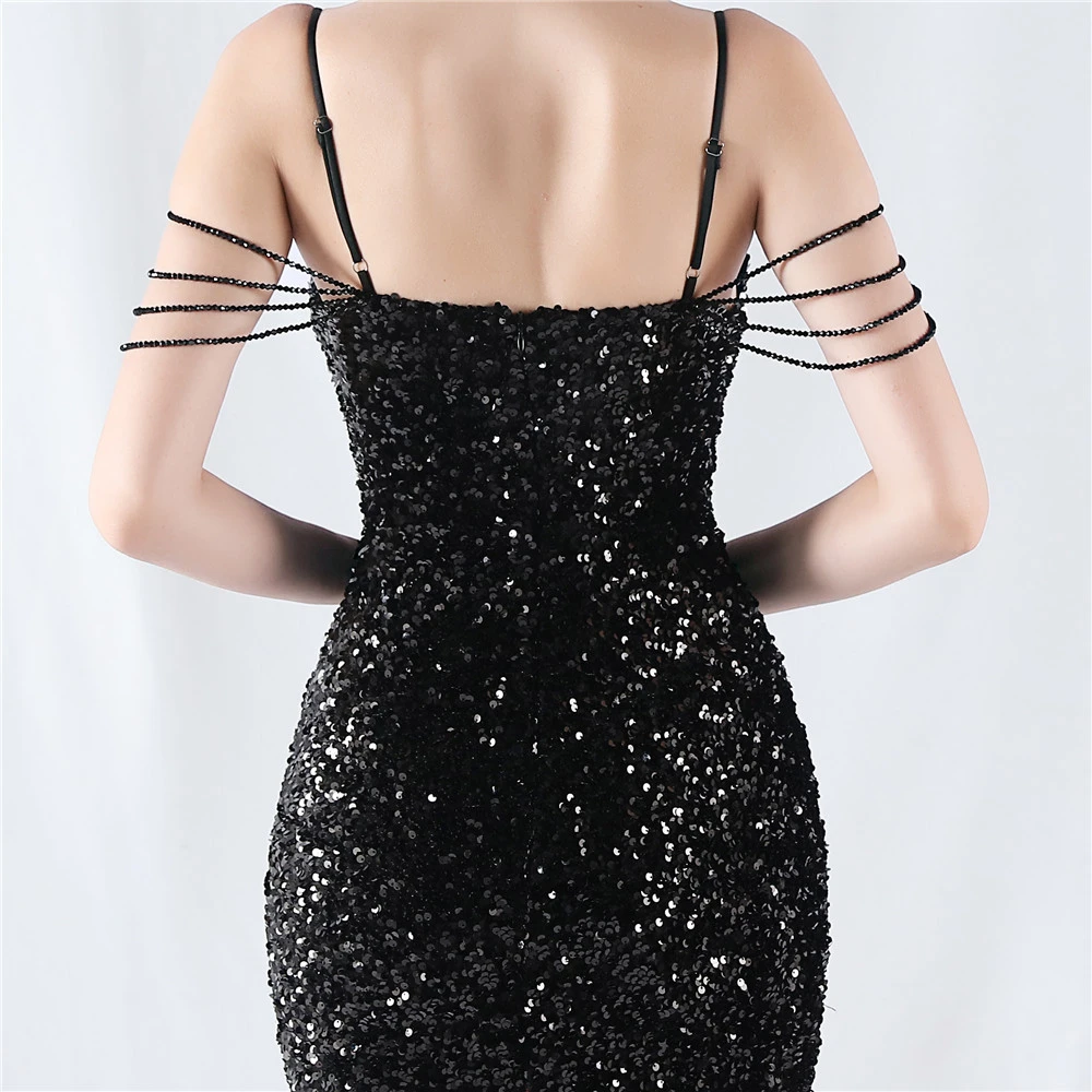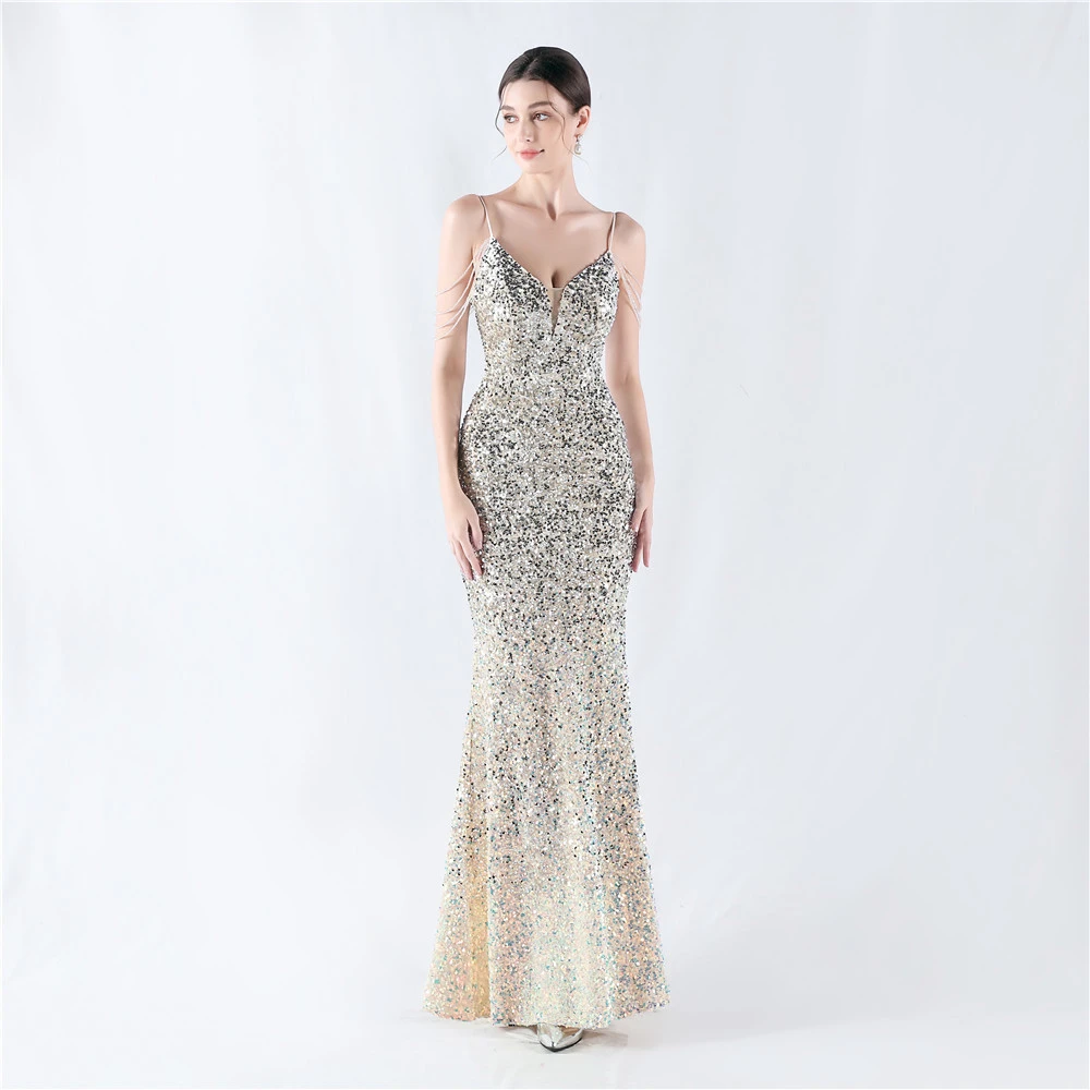 Velvet-Bottom Gradient Sequined Sexy Beaded Suspender Evening Dress