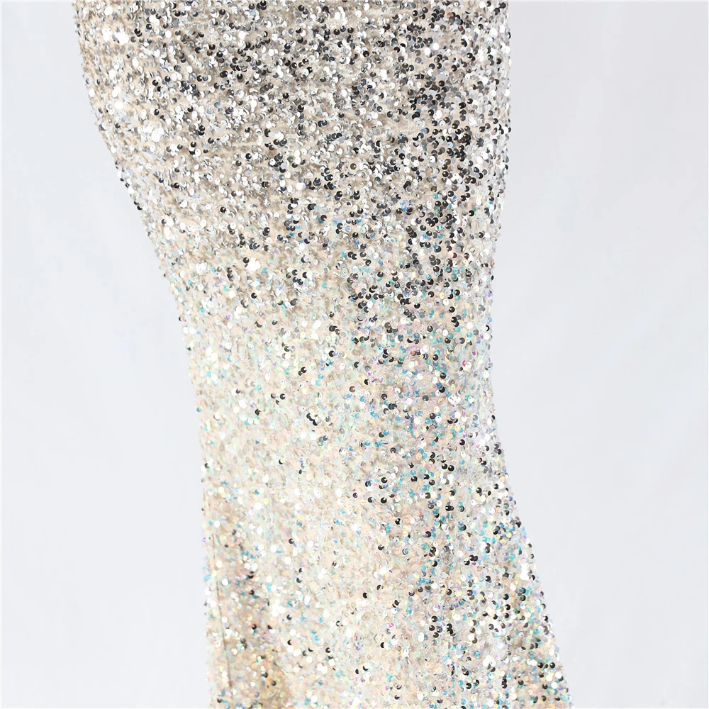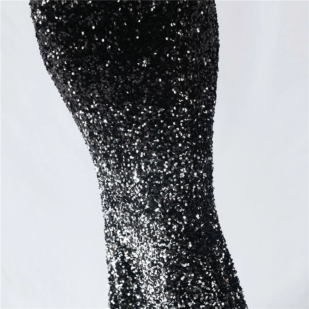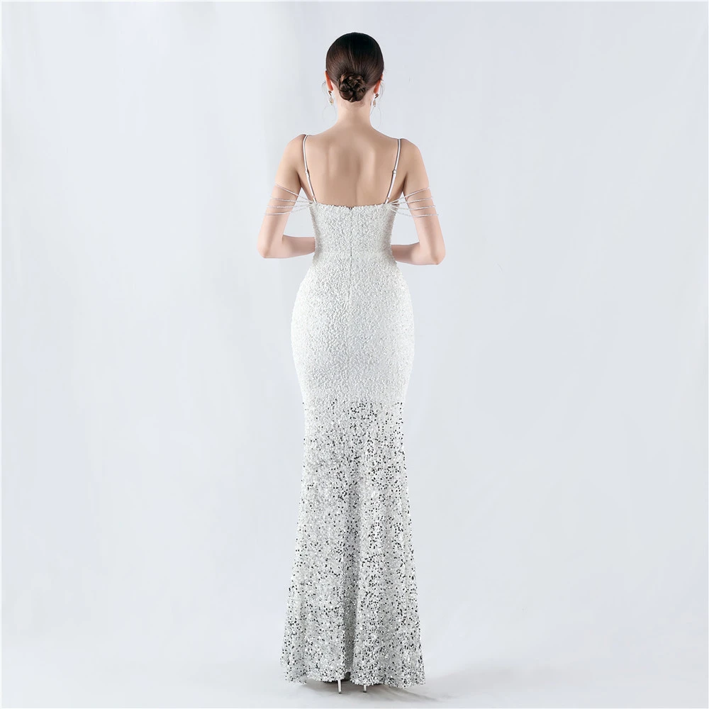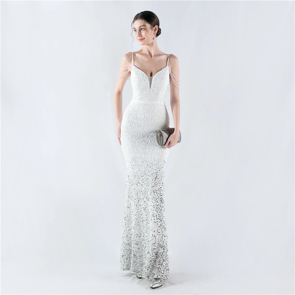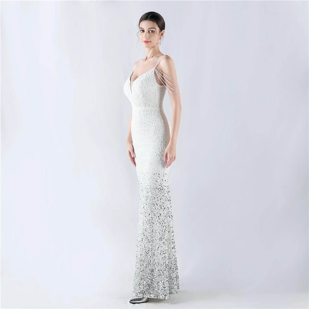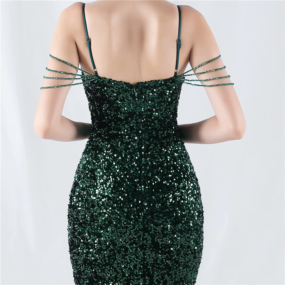Velvet-Bottom Gradient Sequined Sexy Beaded Suspender Evening Dress