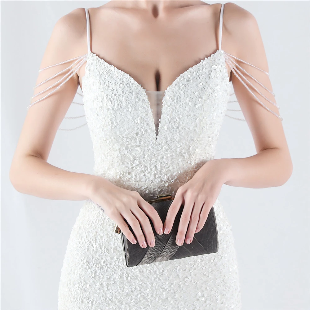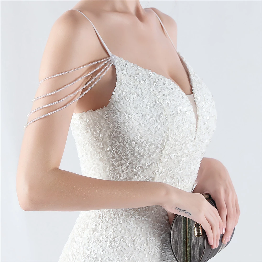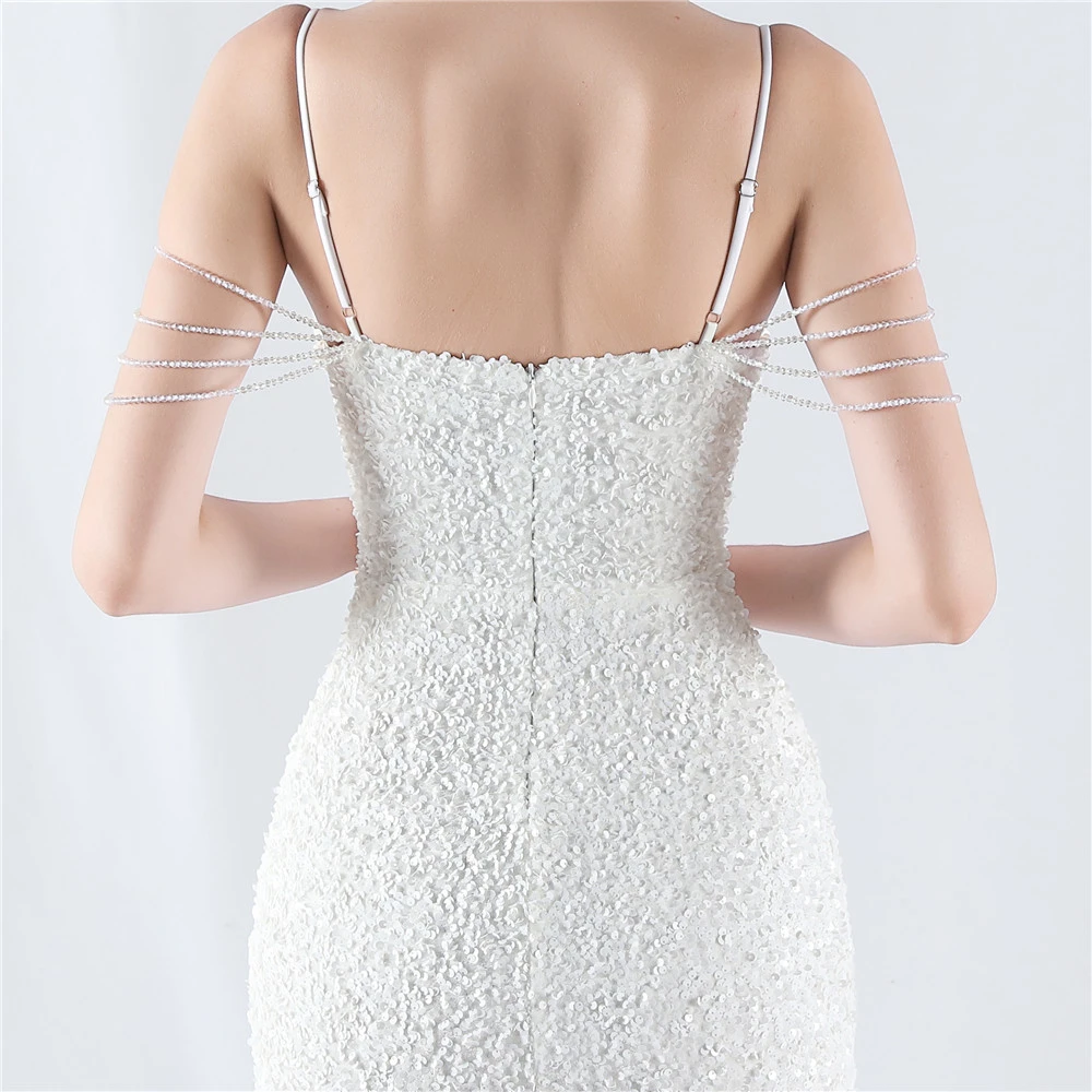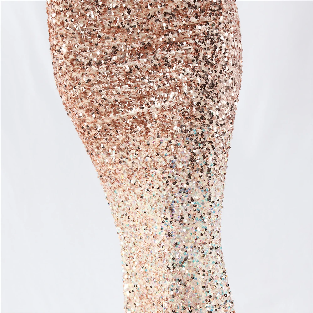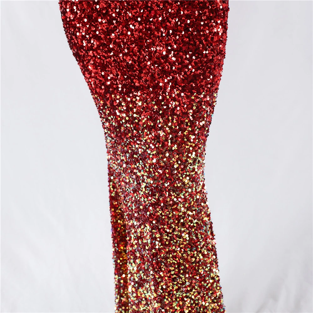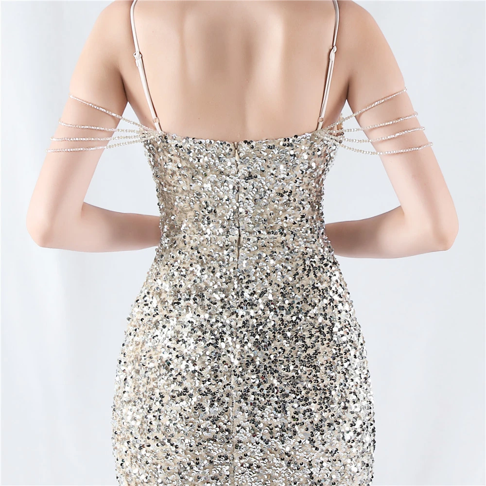 Velvet-Bottom Gradient Sequined Sexy Beaded Suspender Evening Dress