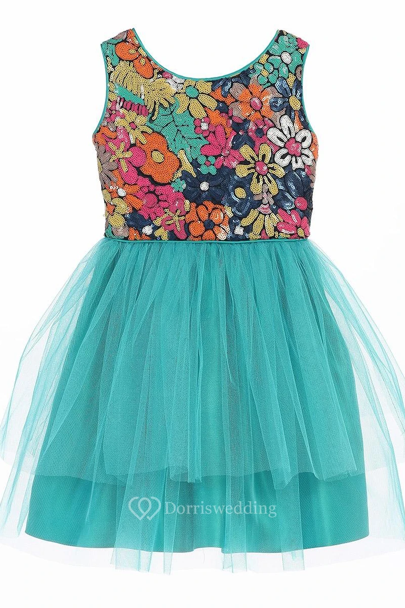 Floral Tea-Length Floral Tulle&Sequins Flower Girl Dress With Sash