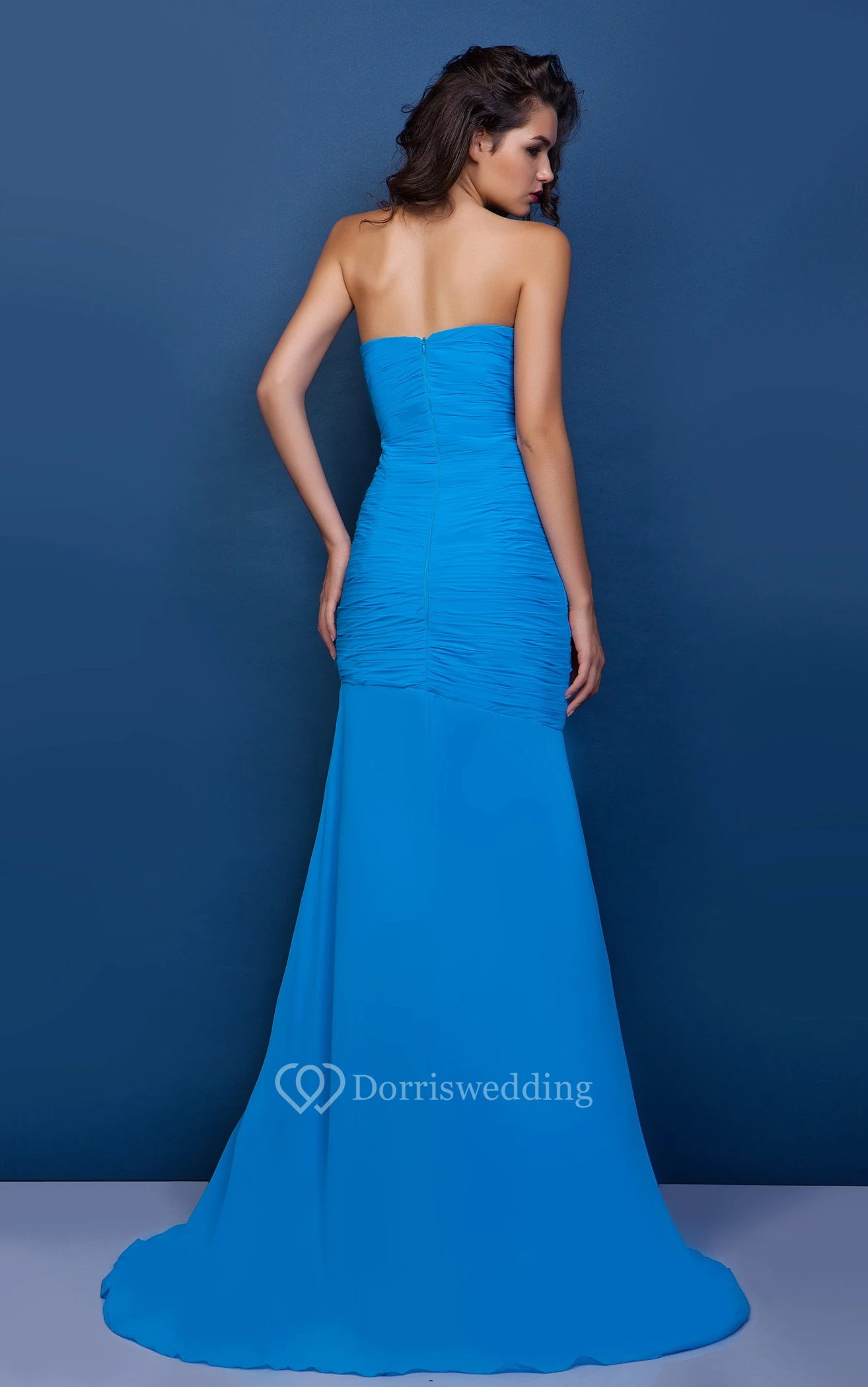 Vibrant Sweetheart Appliqued Maxi Dress With Ruching and Front Slit