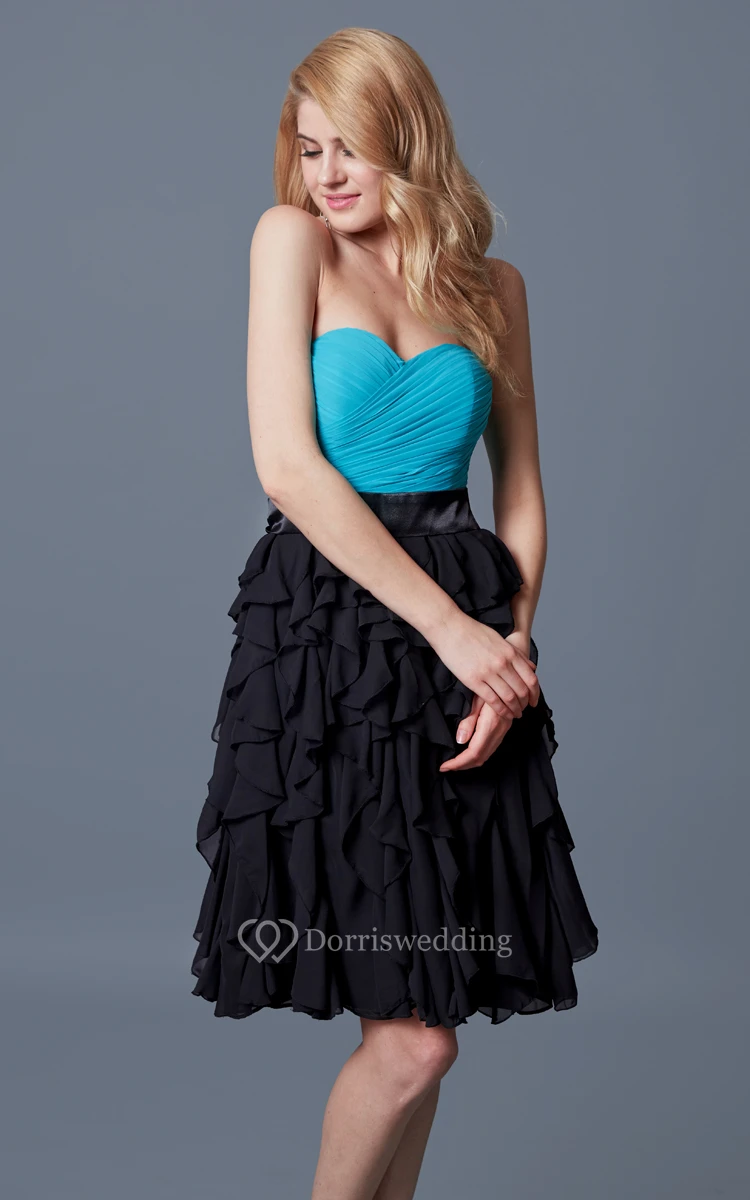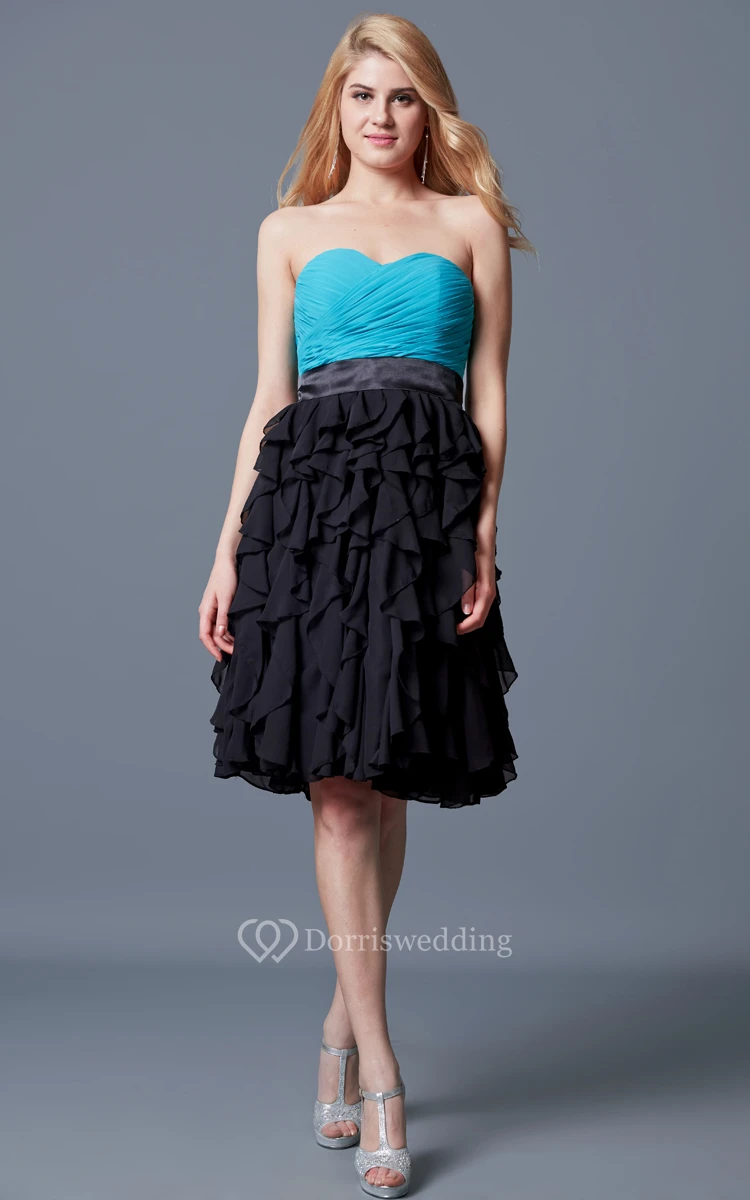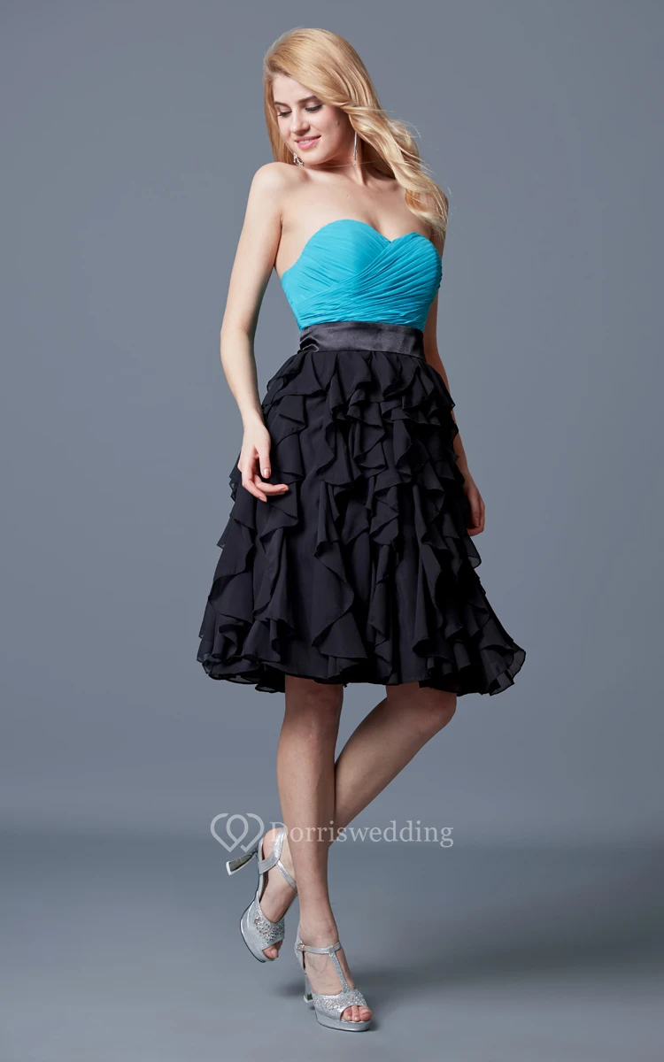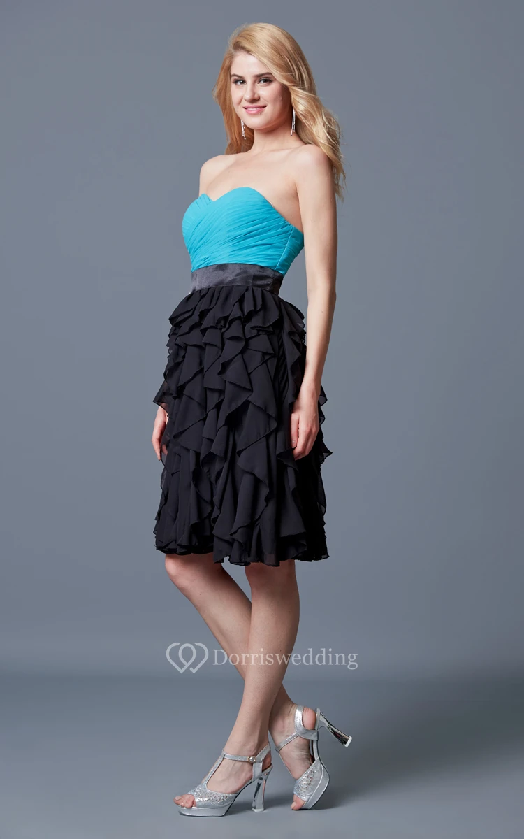 Vibrant Sweetheart Ruffled A-line Short Chiffon Dress
