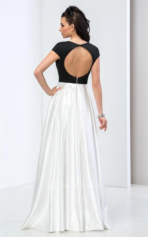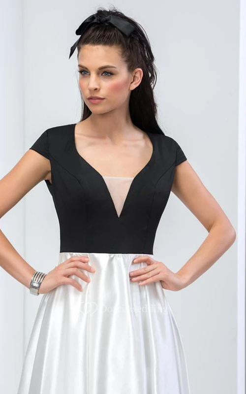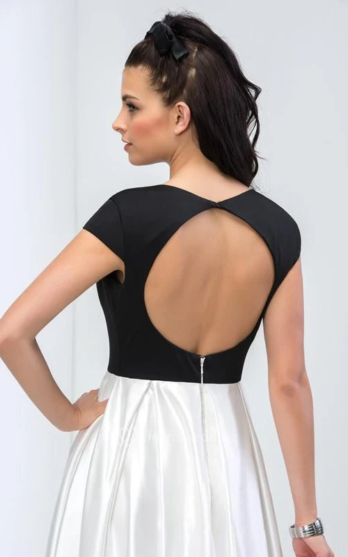 Vintage A-Line Cap Sleeve Color Block Prom Dress