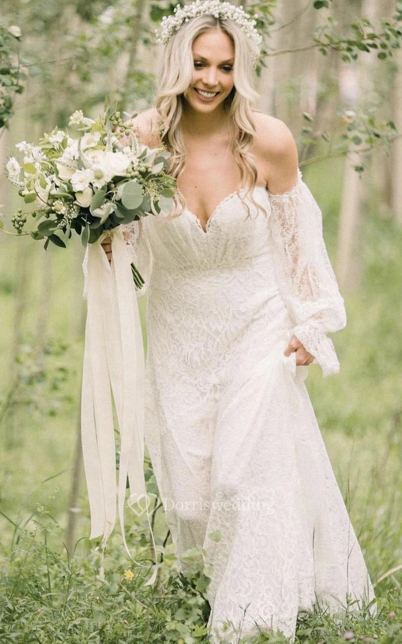 Vintage A Line Lace Floor-length Court Train Open Back Zipper Wedding Dress with Ruching