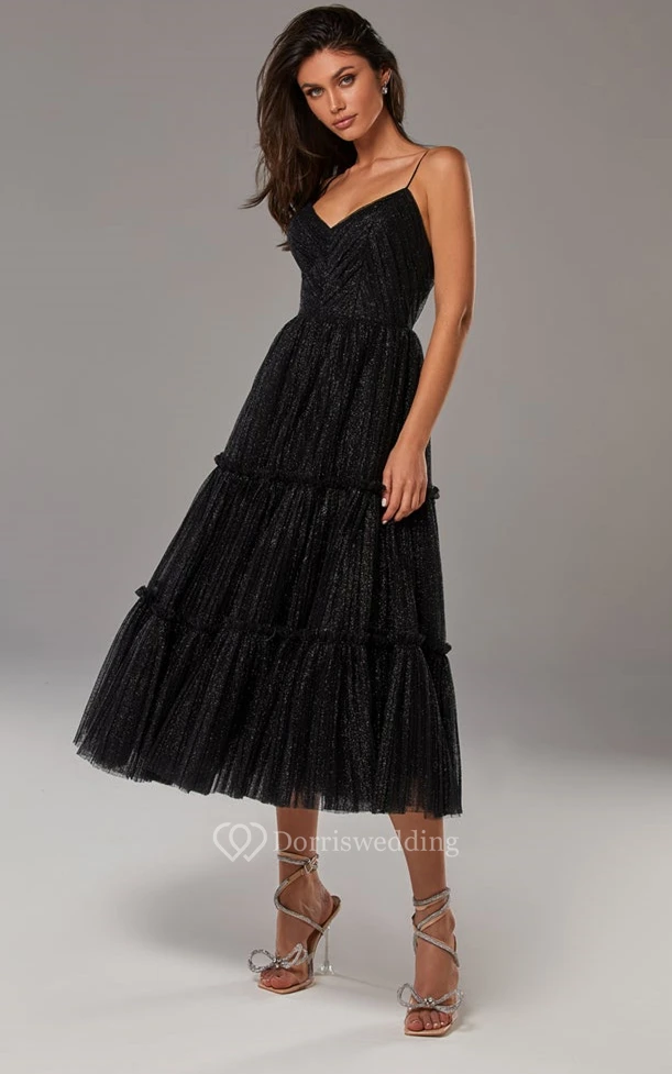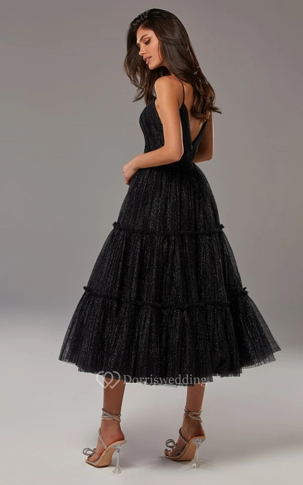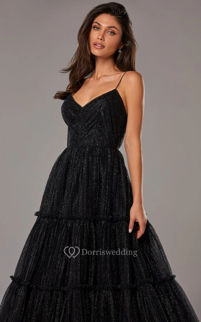 Vintage A Line Spaghetti V-neck Tulle Prom Dress