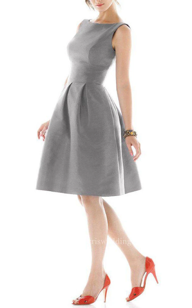 Vintage Bateau Neck Fit and Flare Satin Dress
