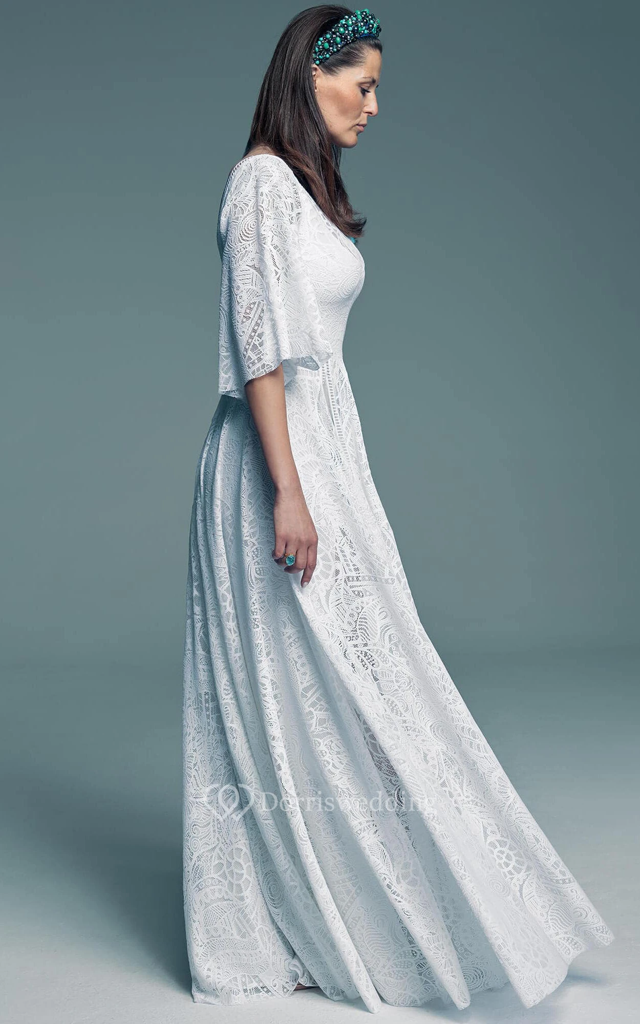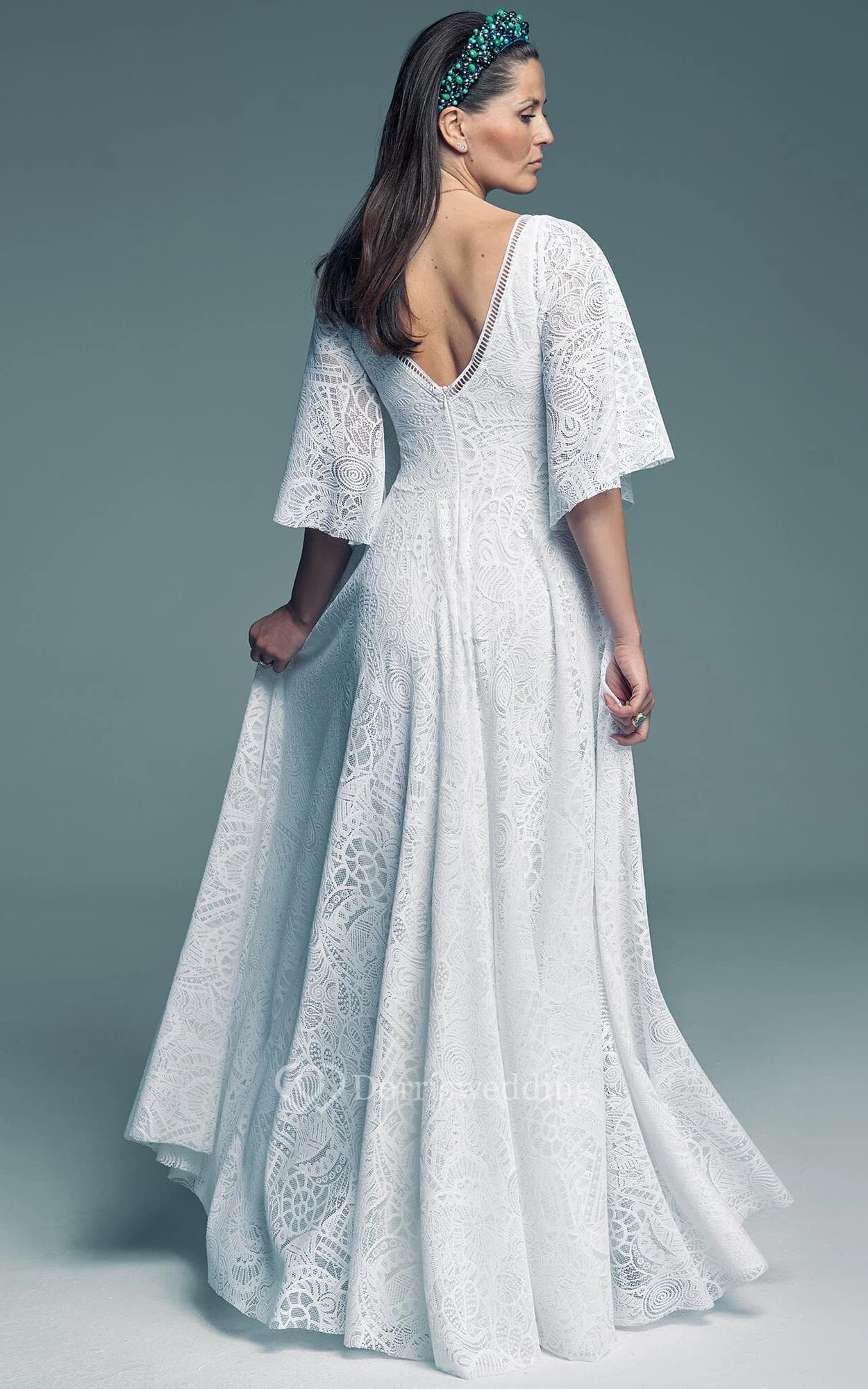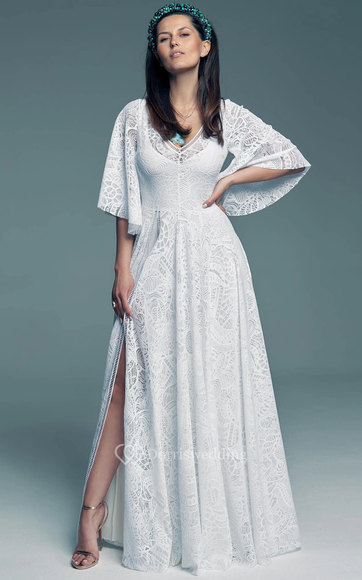 Vintage Bell Half-sleeve Front Split Lace Empire Wedding Dress