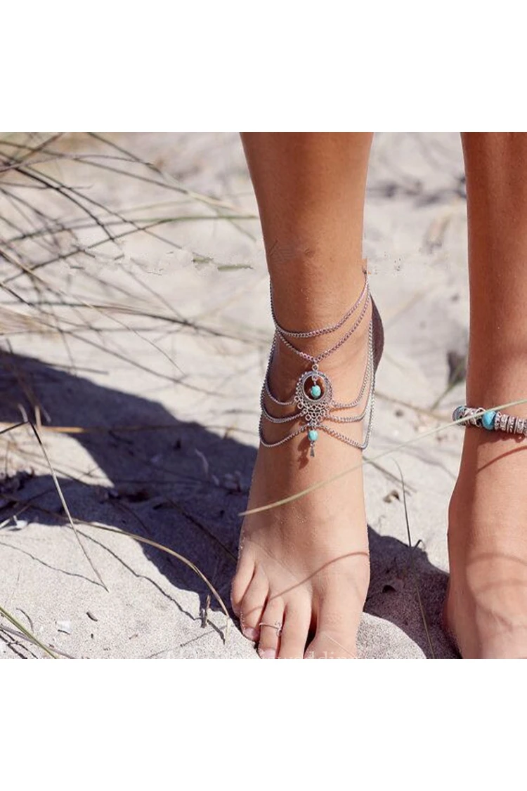 Vintage Ethnic Style Hollow Turquoise Water Droplets Ankle 27Cm