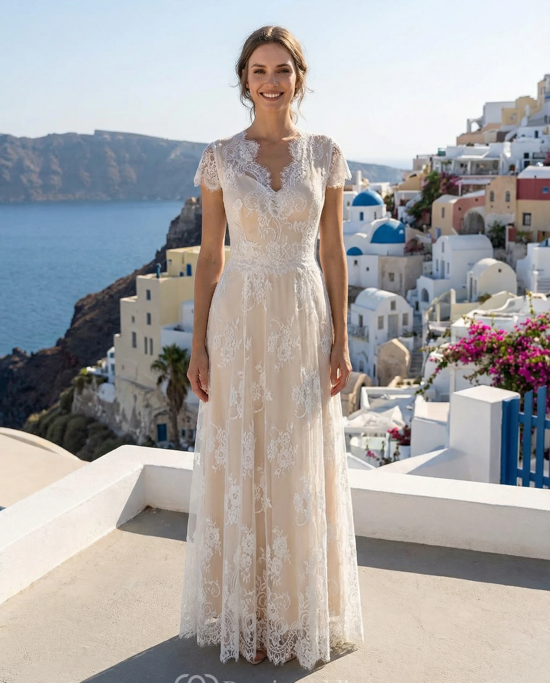Vintage Ivory Lace Empire Sheath Wedding Gown