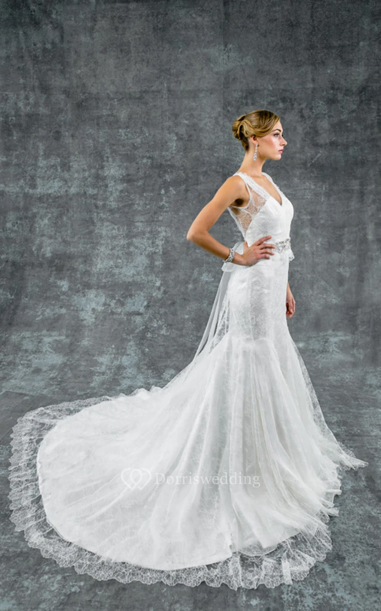 Vintage Lace A-Line Sleeveless V-Neck Gown