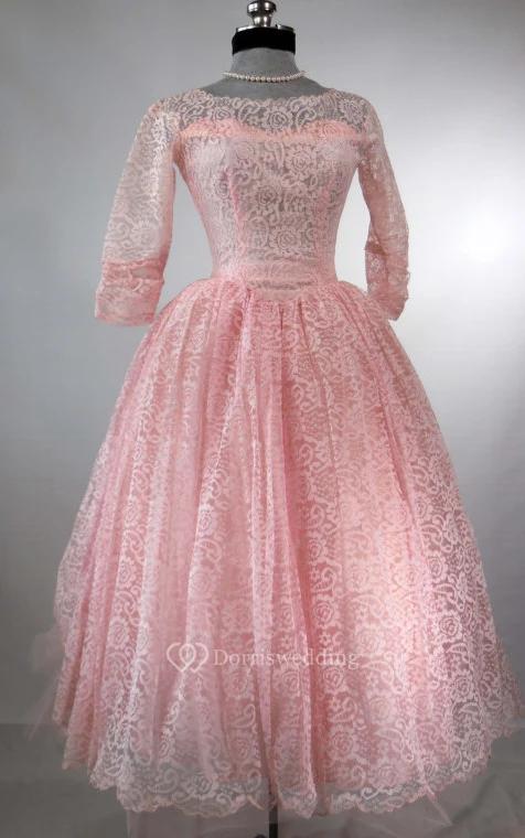 Vintage Long-sleeved Lace Ball Gown With Ruffles