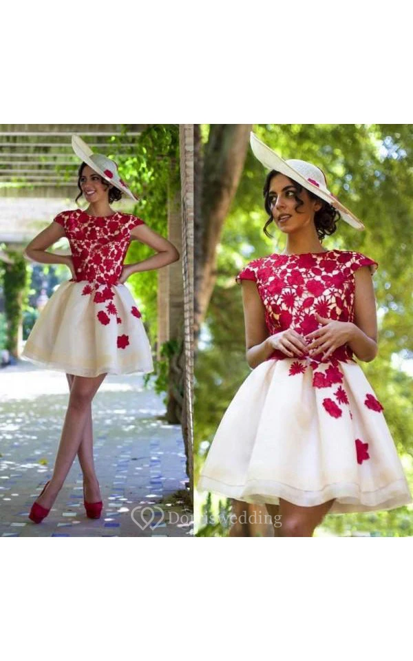 Vintage Mini Cap sleeves Organza Dress With Appliques