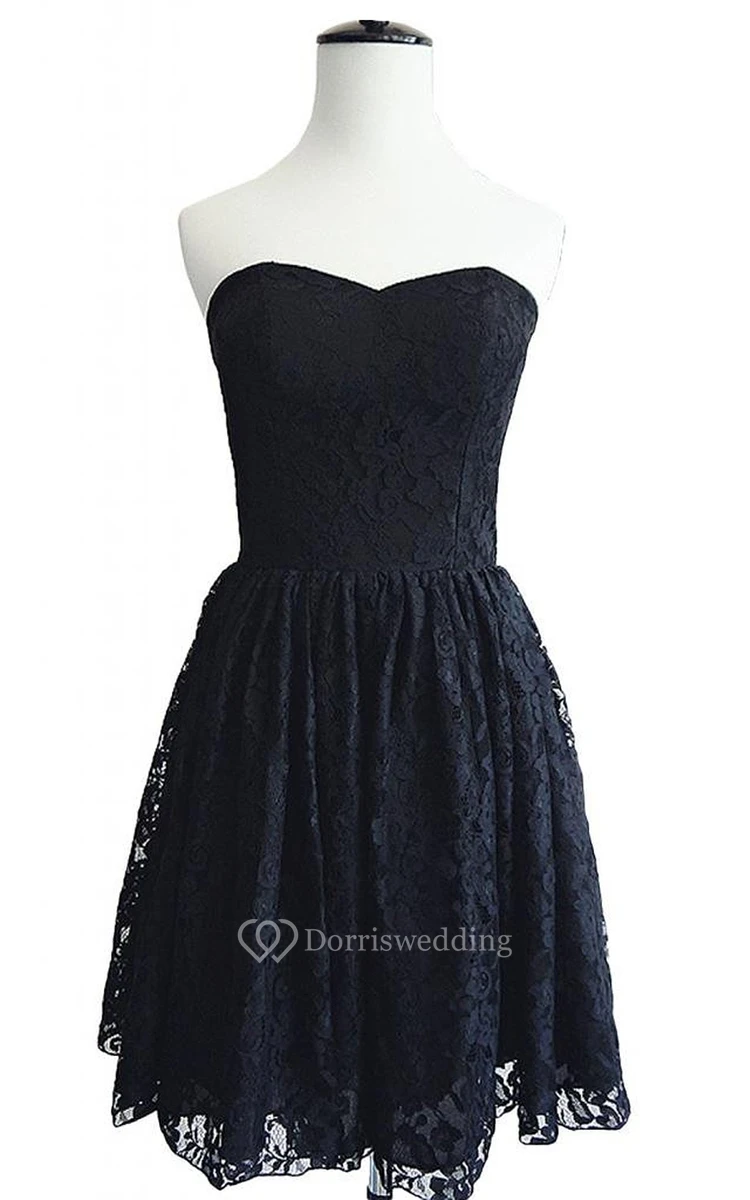 Vintage Strapless Lace Dress With Zipper Back