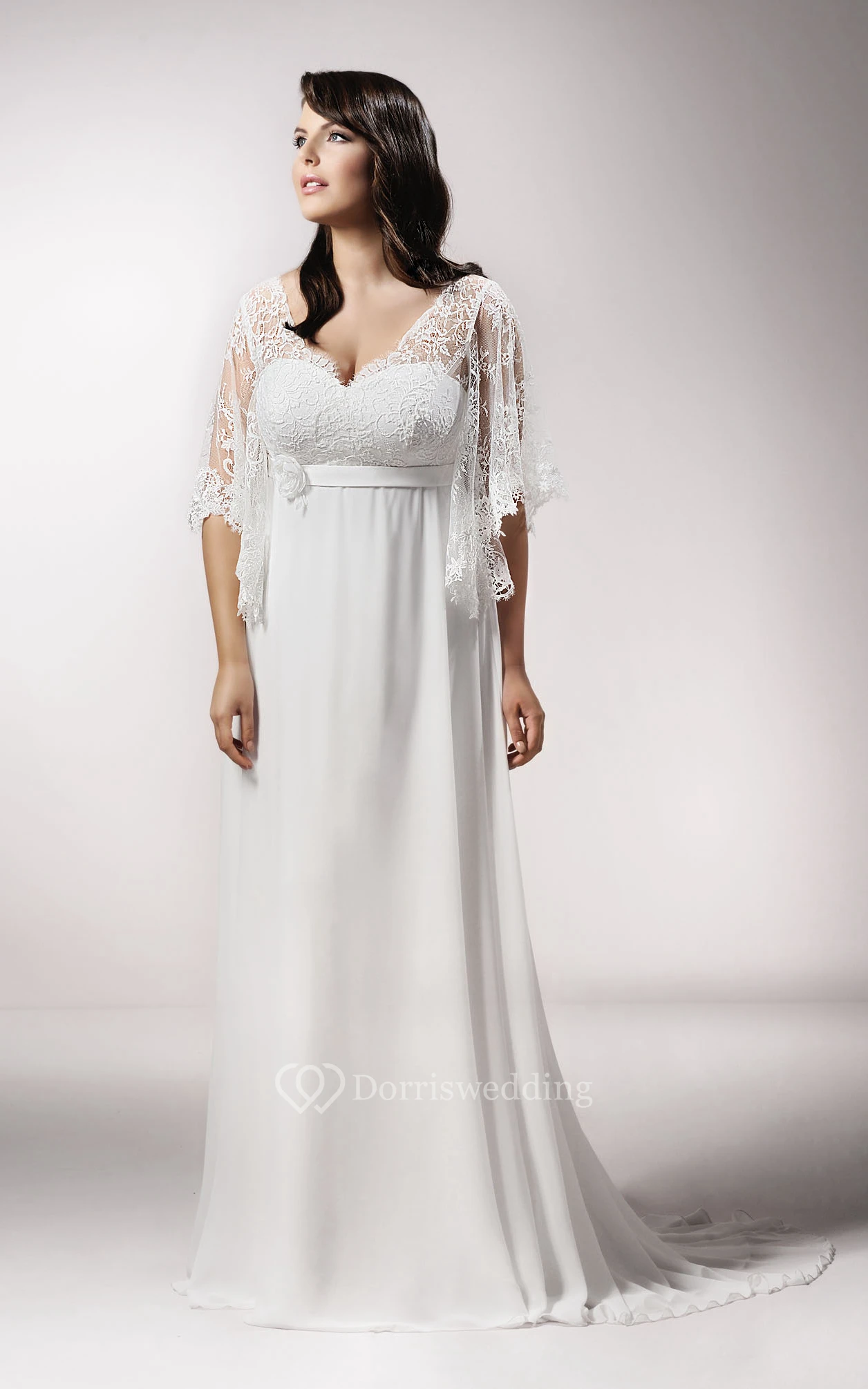 • Hemline/Train: Floor-length, Sweep/Brush Train