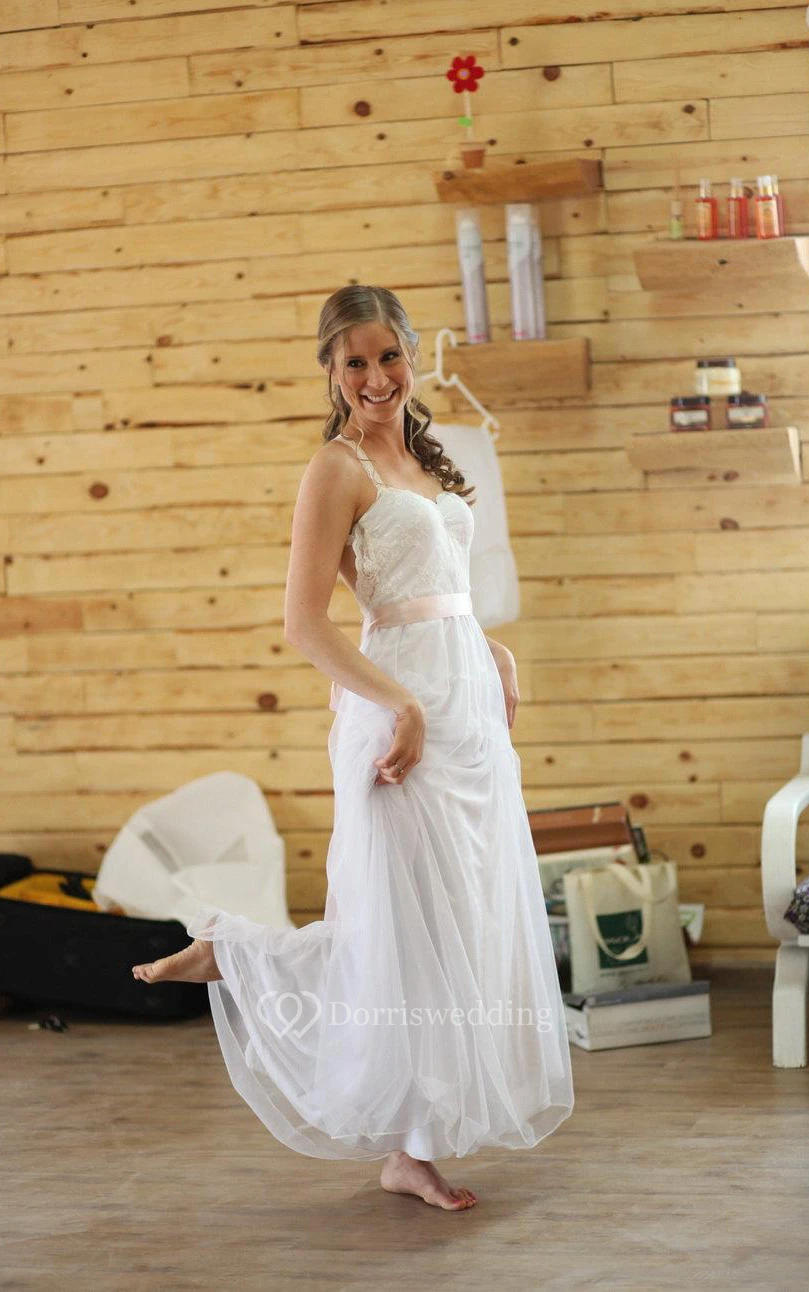 Vintage Tulle A-Line Open Back Dress With Lace Bodice