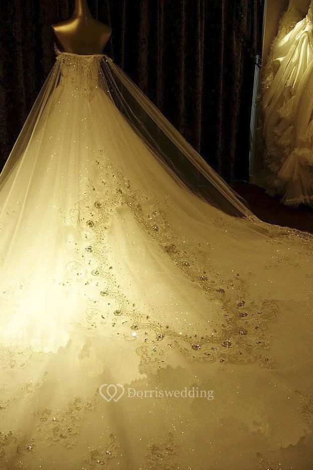 This dress features a lace-up back. We can customize your dress to have no train! Describe your desired alterations in the "Order Notes" at checkout. Our tailors will bring your vision to life. Please note that custom orders aren't returnable.
