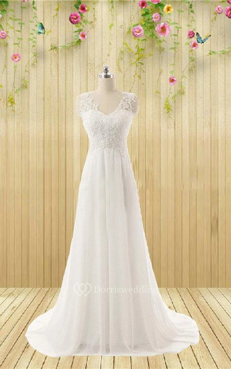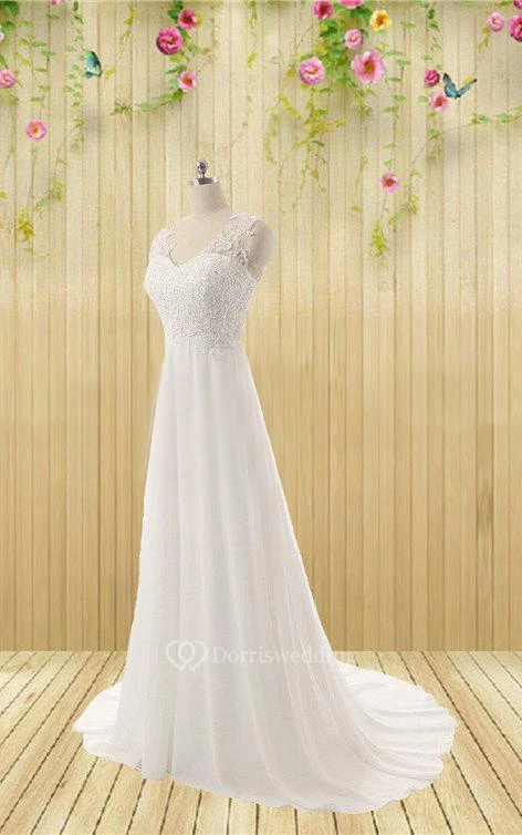 Wedding Appliqued Rhinestone Sleeveless V-Neckline Bridal Gown