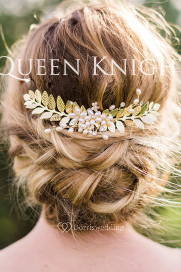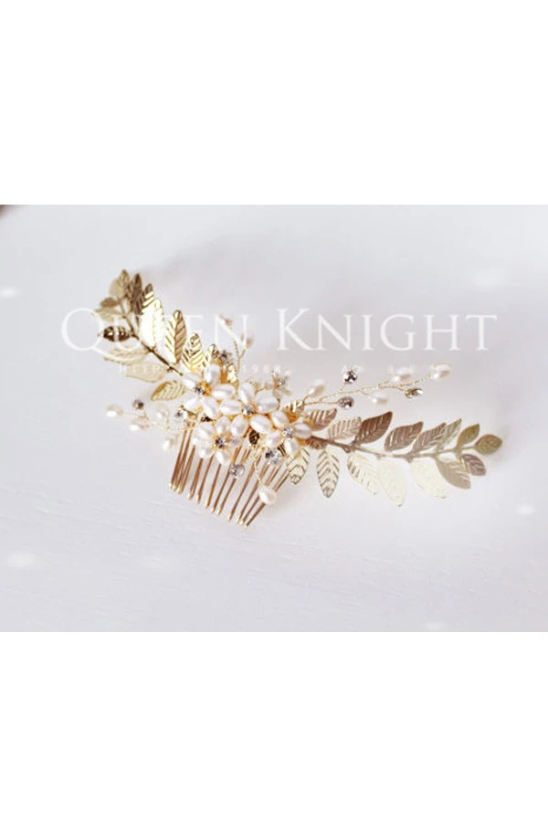 Western Style Wind Pearl Rhinestone Gold Leaf Hair Comb