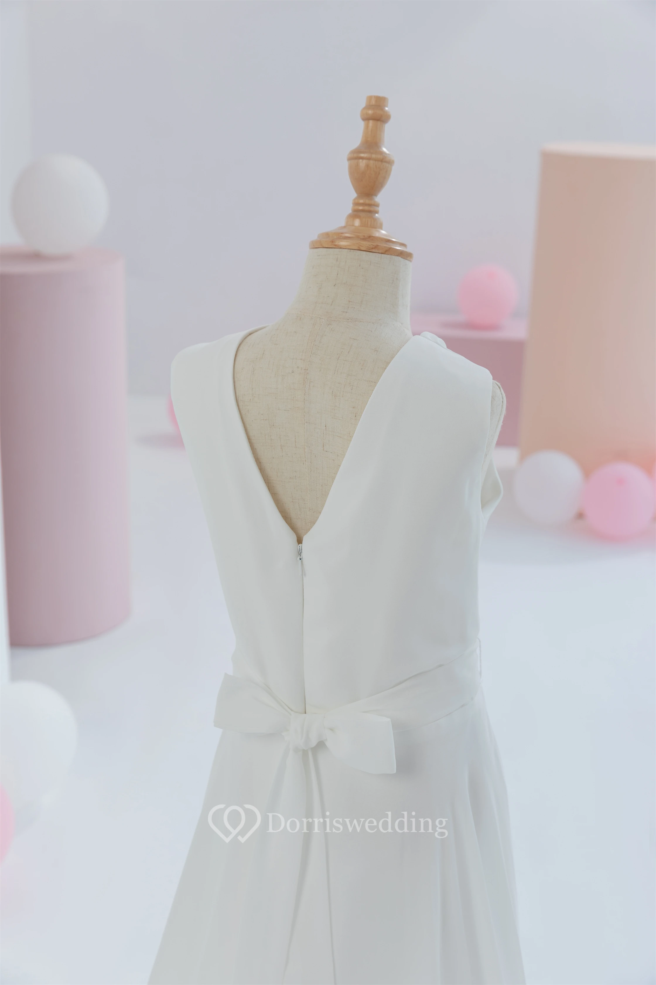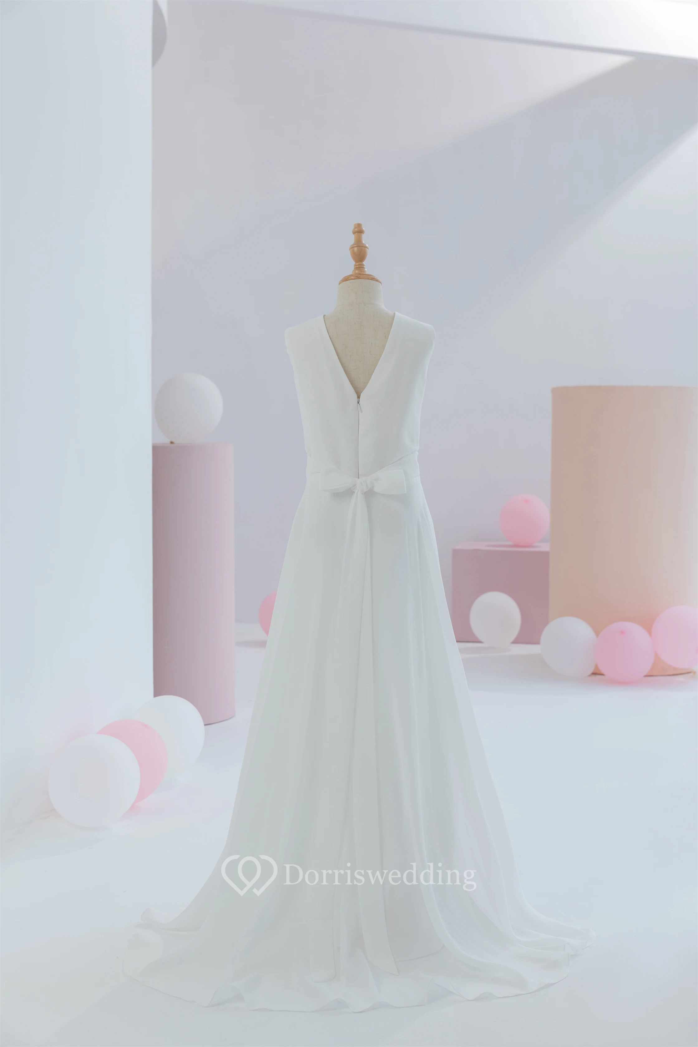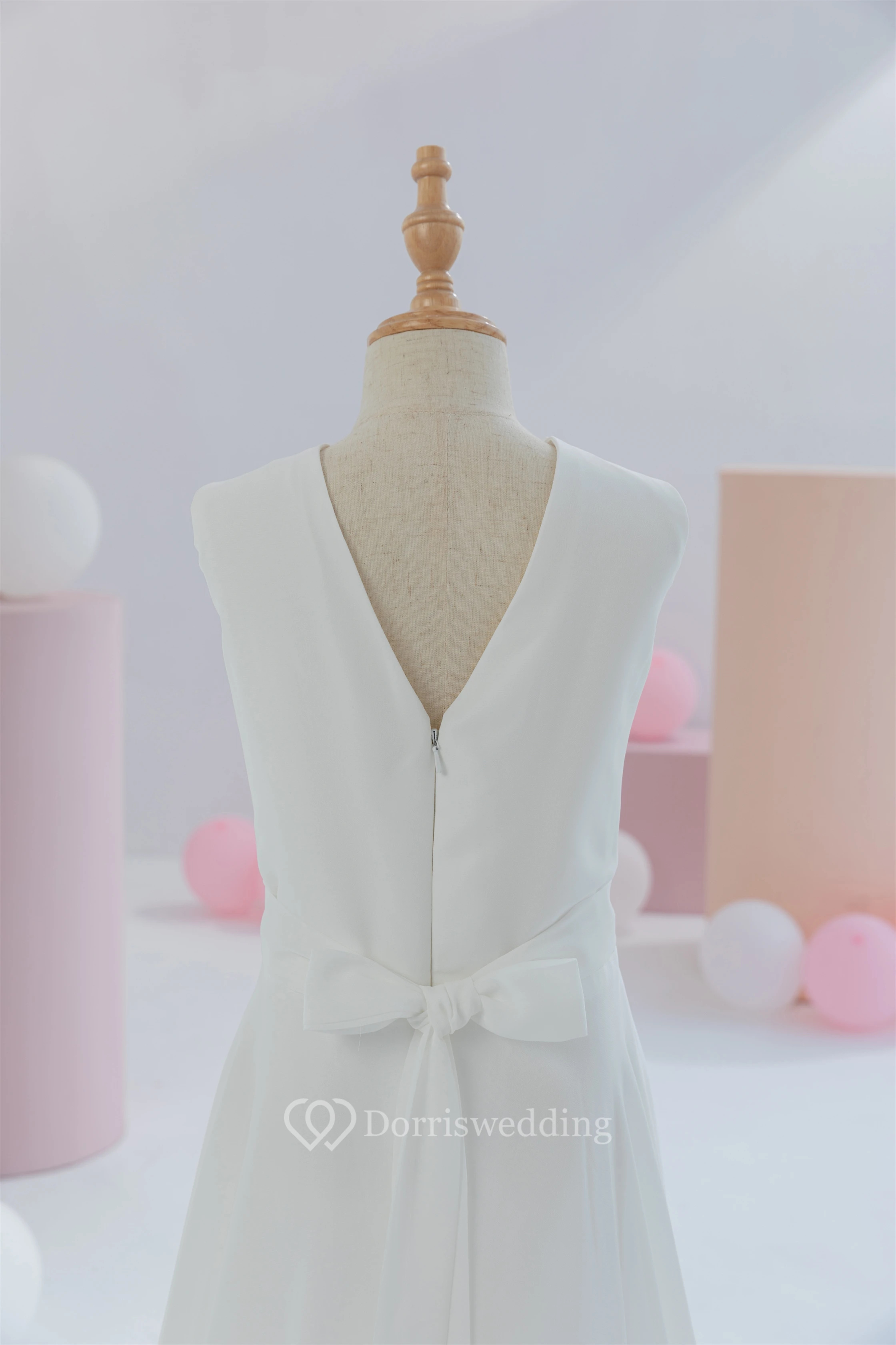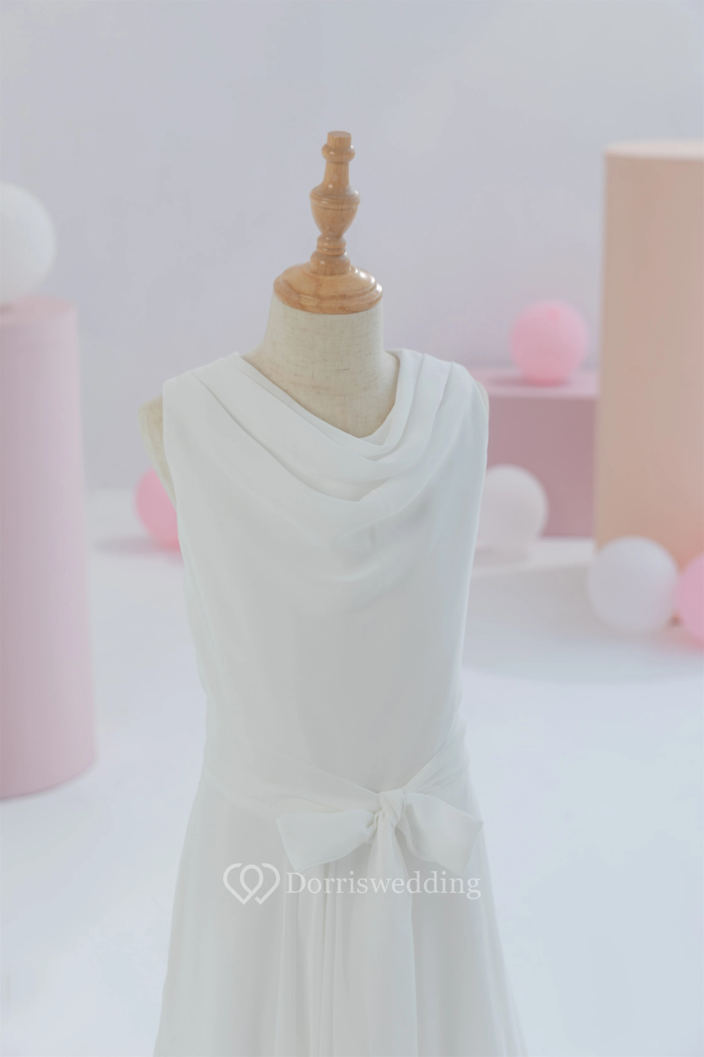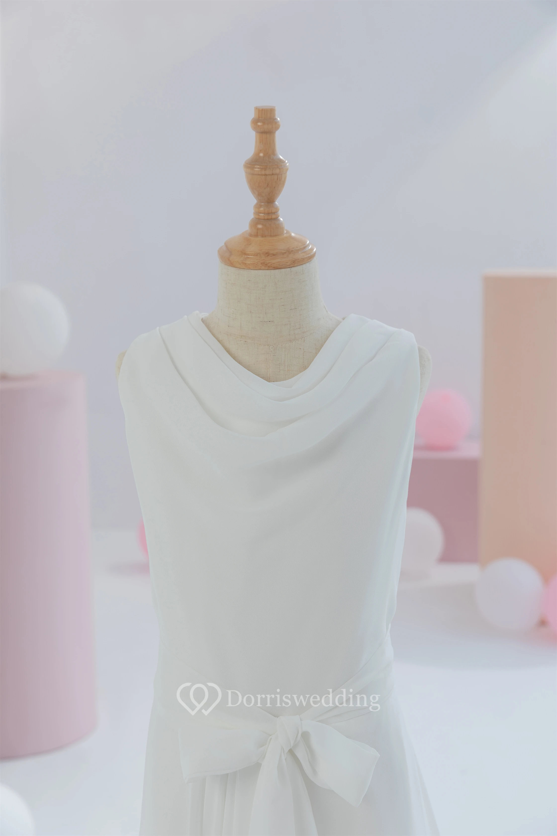 White First Communion Cowl-neck Sleeveless Floor-length Flowergirl Dress