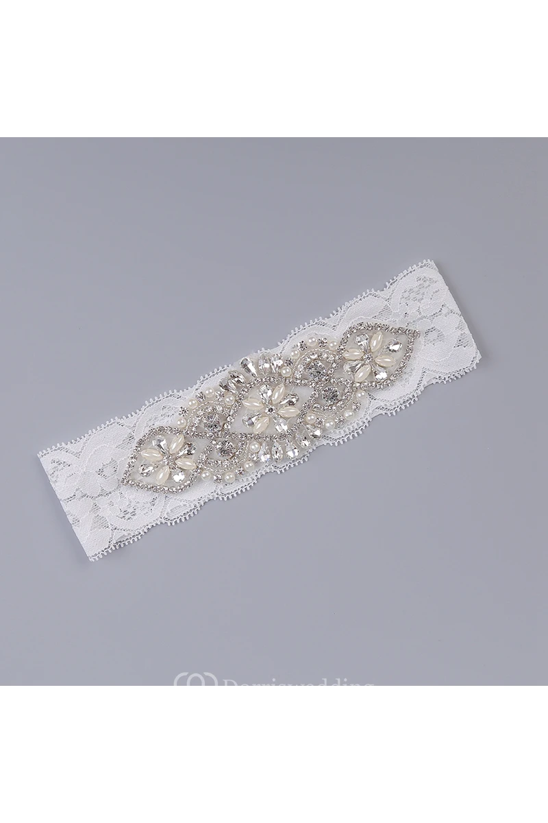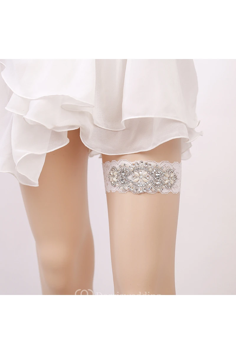 White Sexy Lace Rhinestone Princess Style Handmade Garter Grip Within 16-23inch