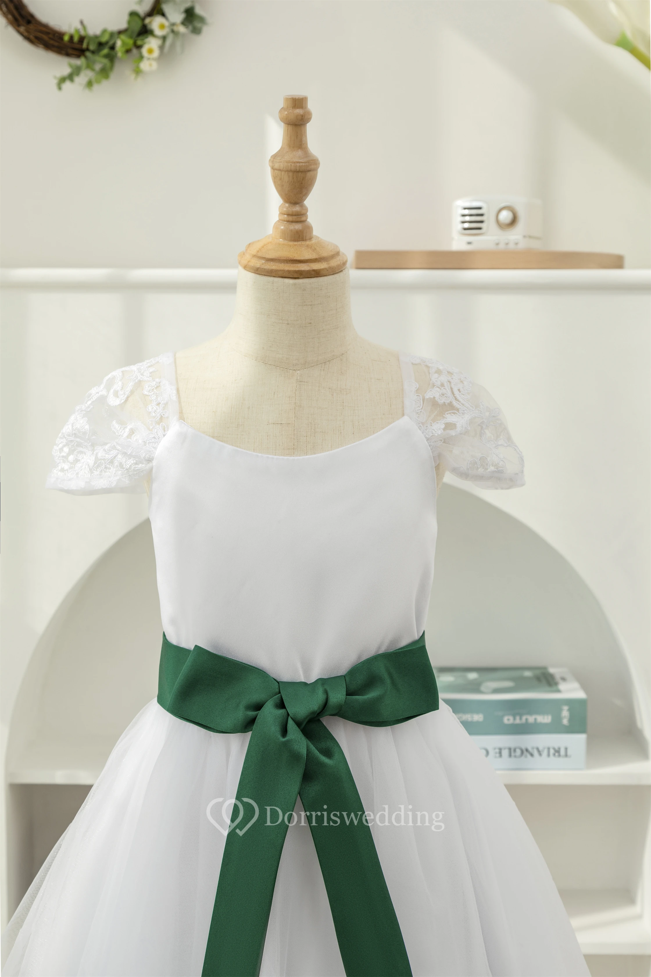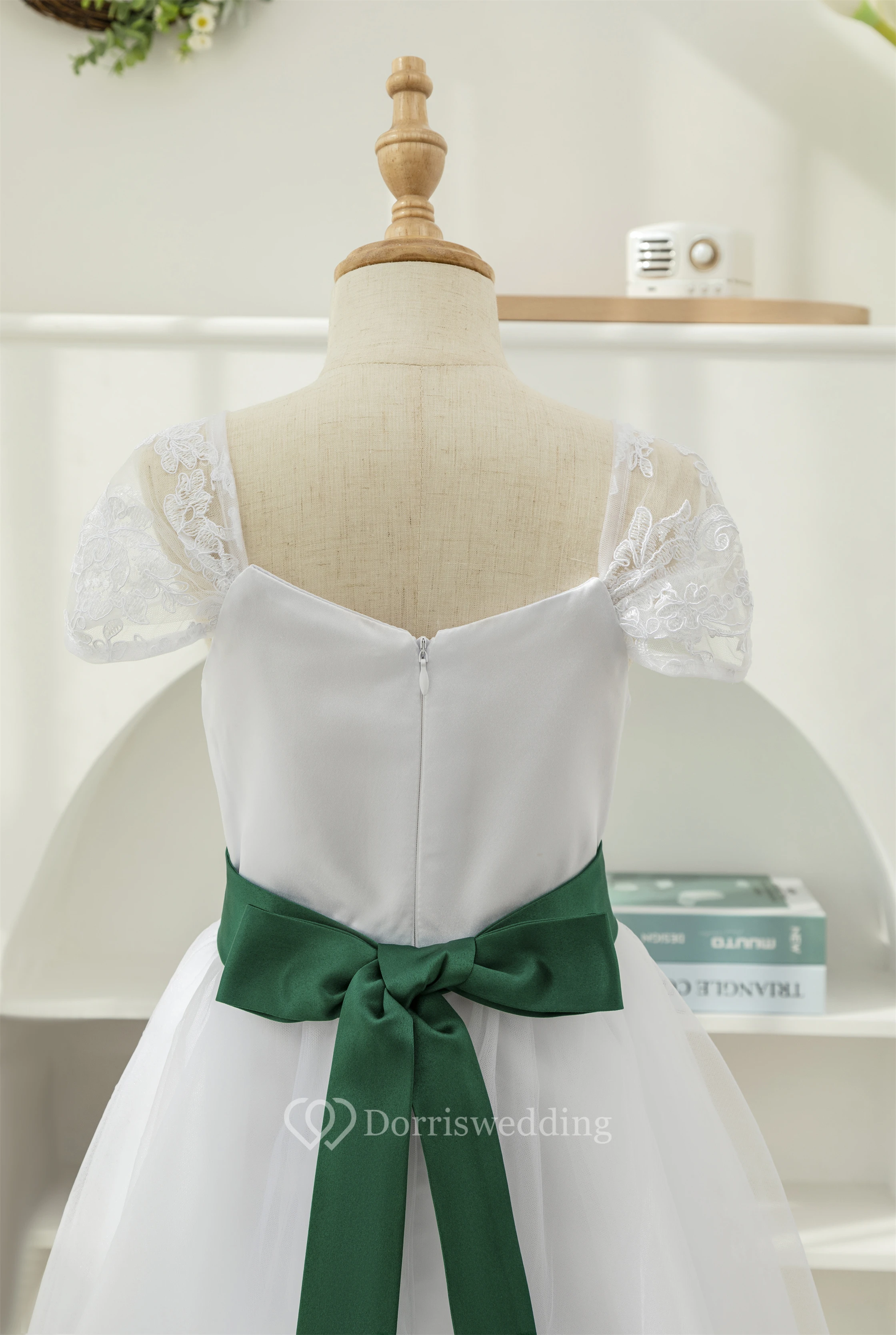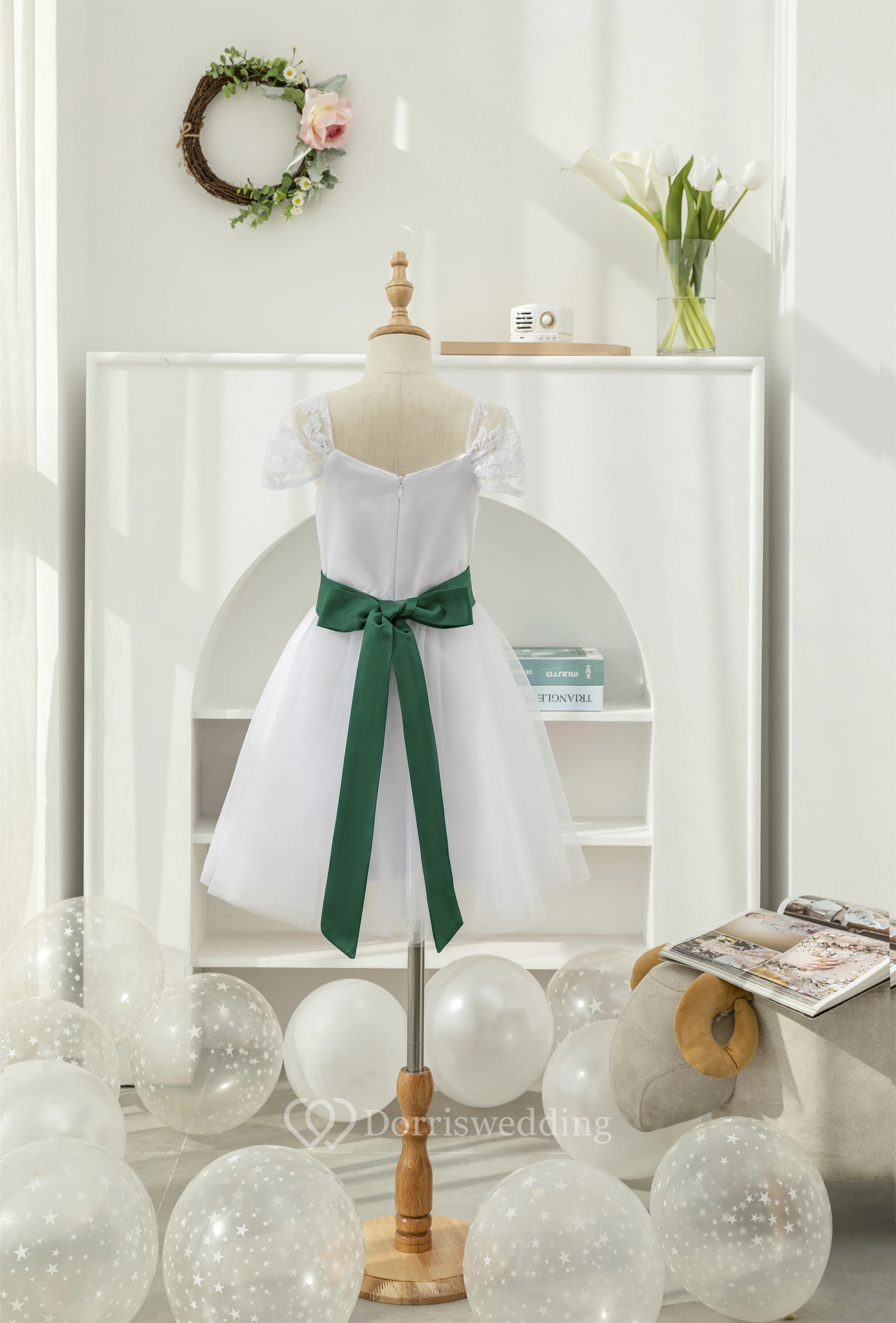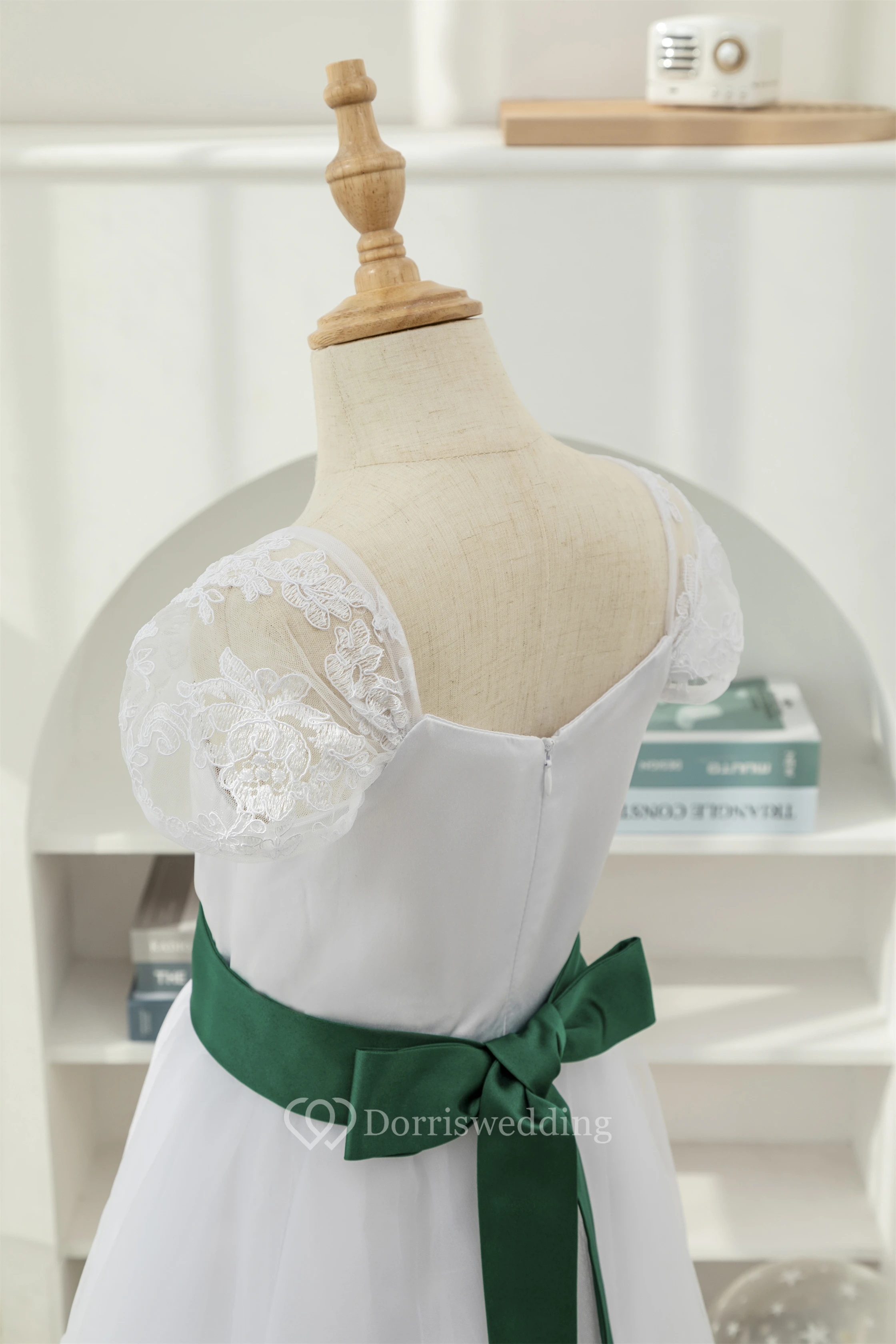 White Short-sleeve A-line Tulle First Communion Flowergirl Dress