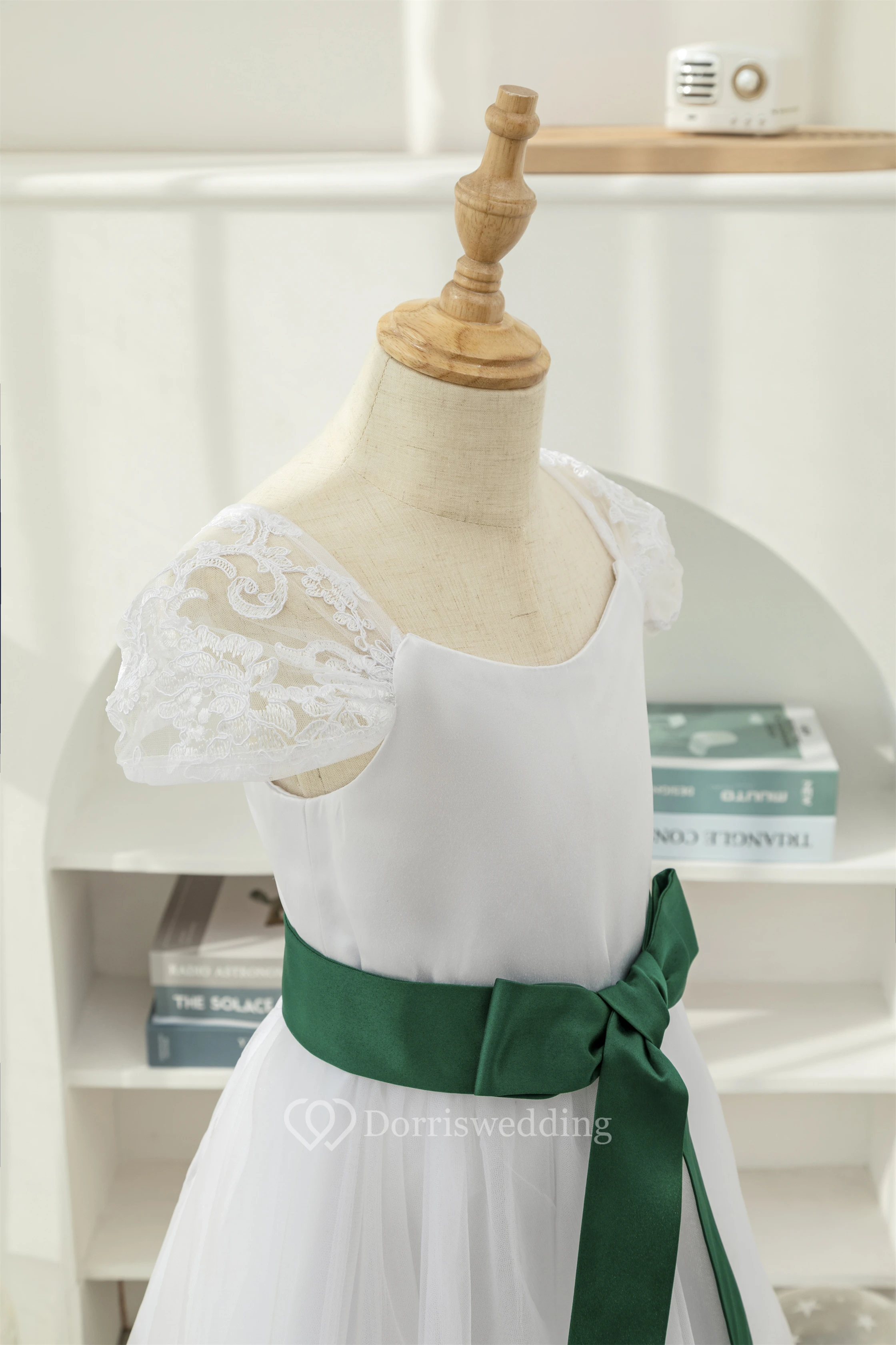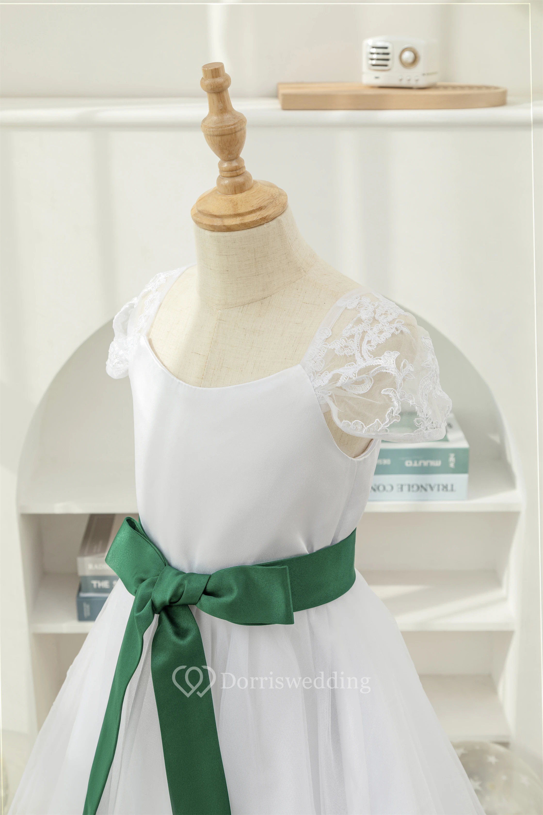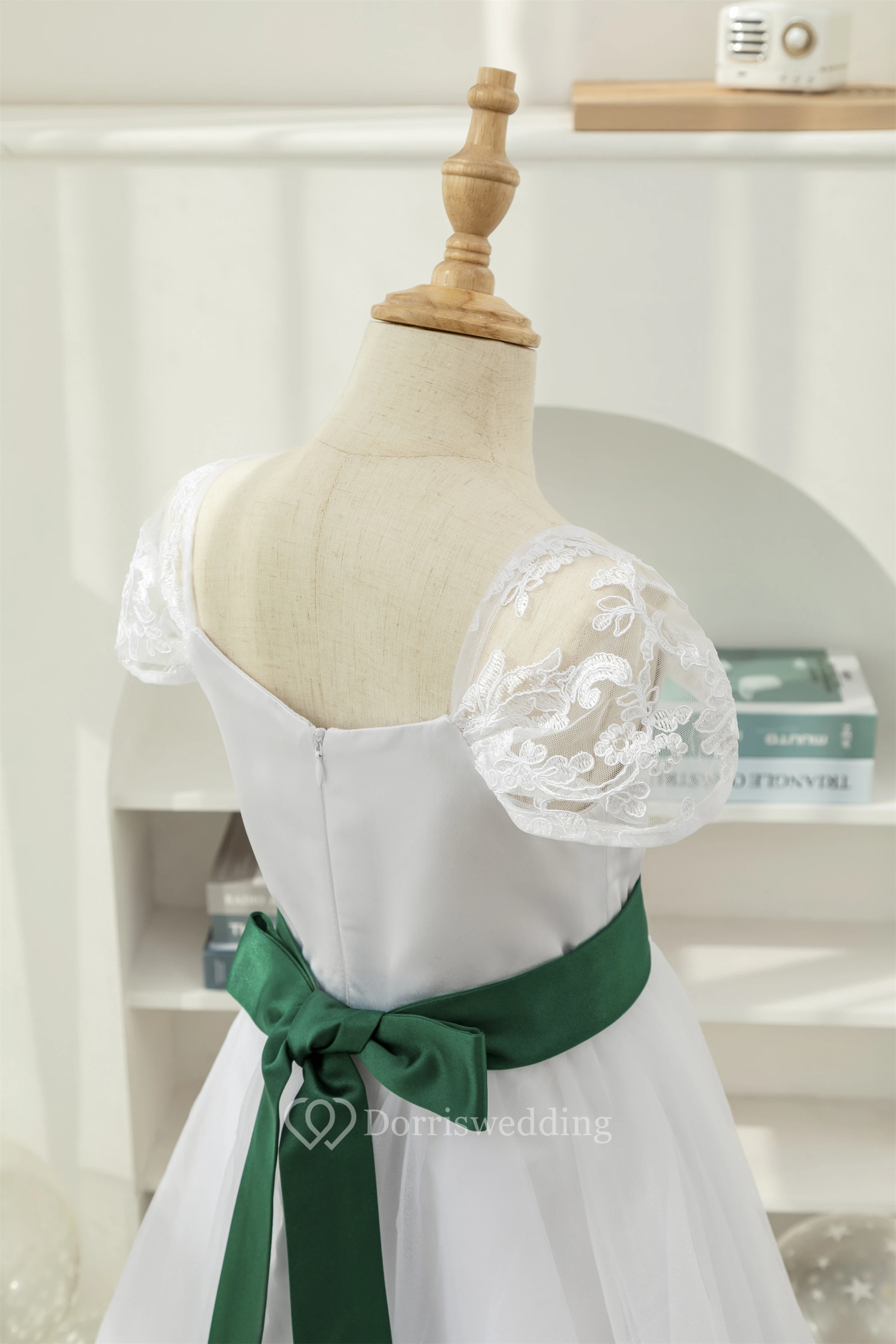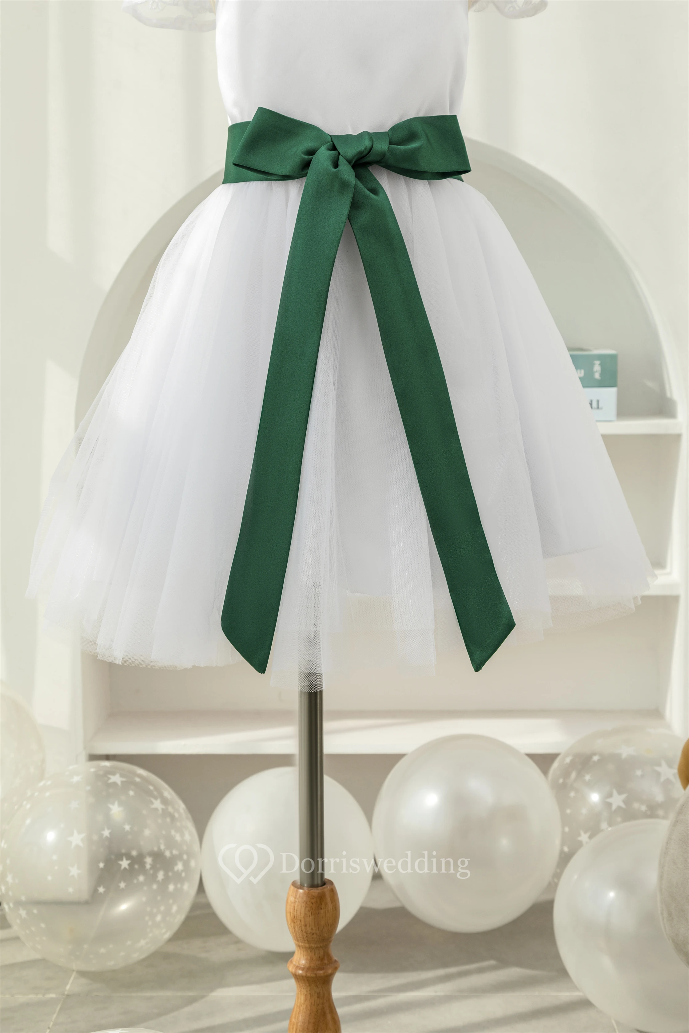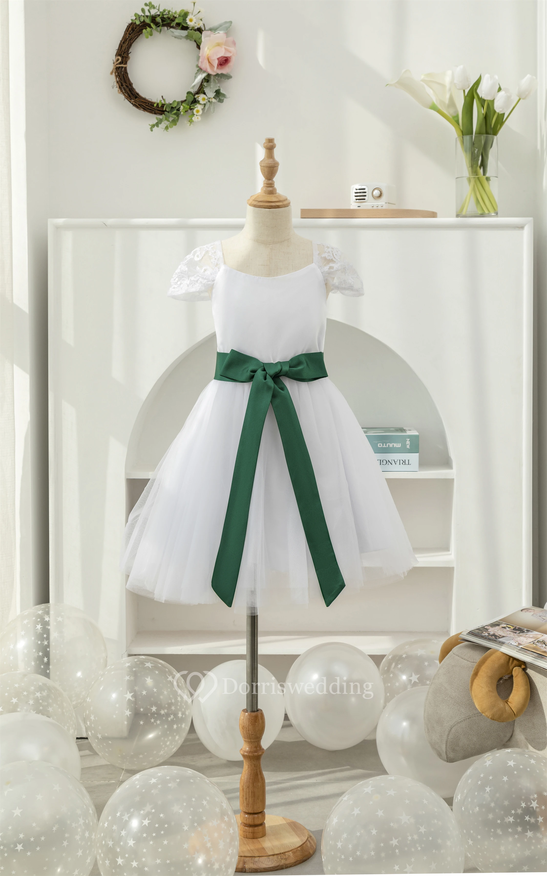 White Short-sleeve A-line Tulle First Communion Flowergirl Dress