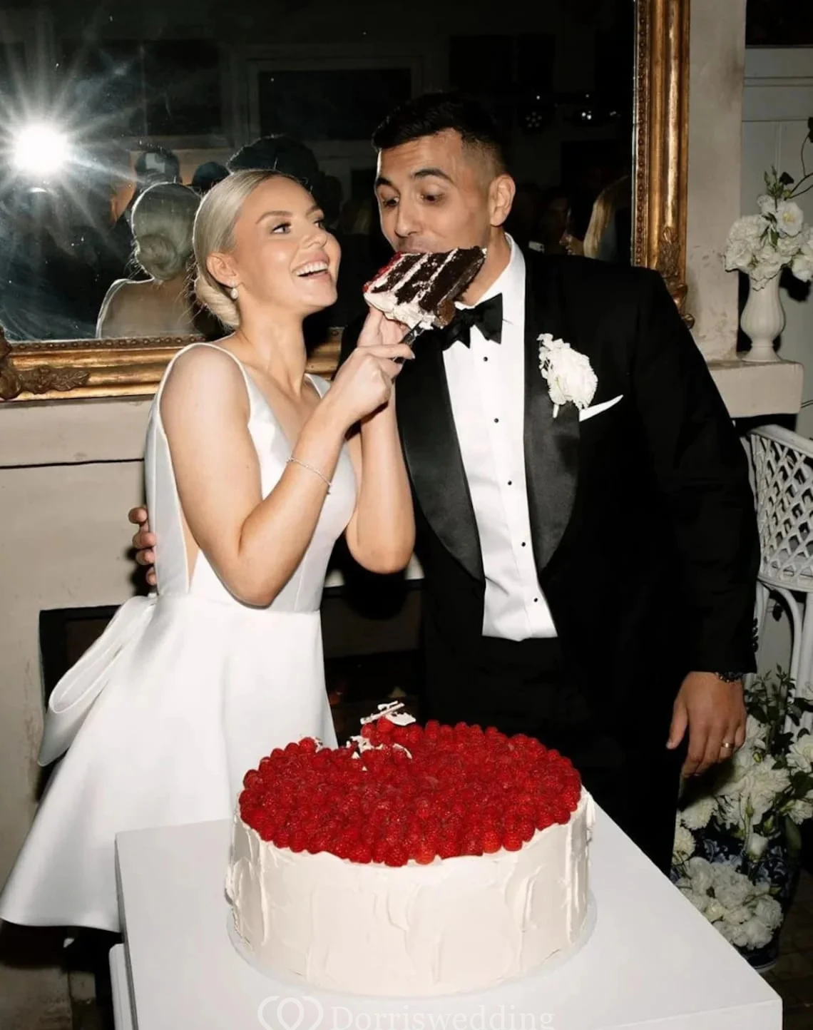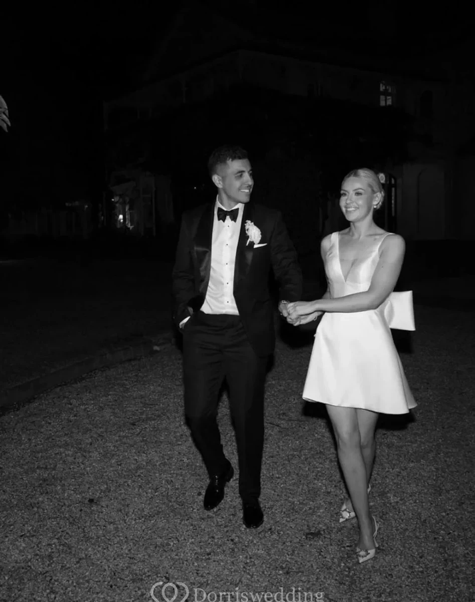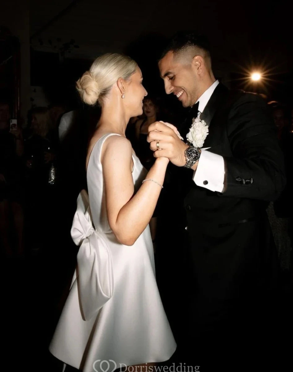 This elegant white evening dress features a V-neckline, sleeveless design, and an A-line silhouette with a large bow decoration at the back. Perfect for formal events like weddings, galas, or evening parties, it offers a romantic and sophisticated look. Made from satin-like fabric, it ensures comfort and style for night occasions. The design is ideal for wedding guests or special celebrations.