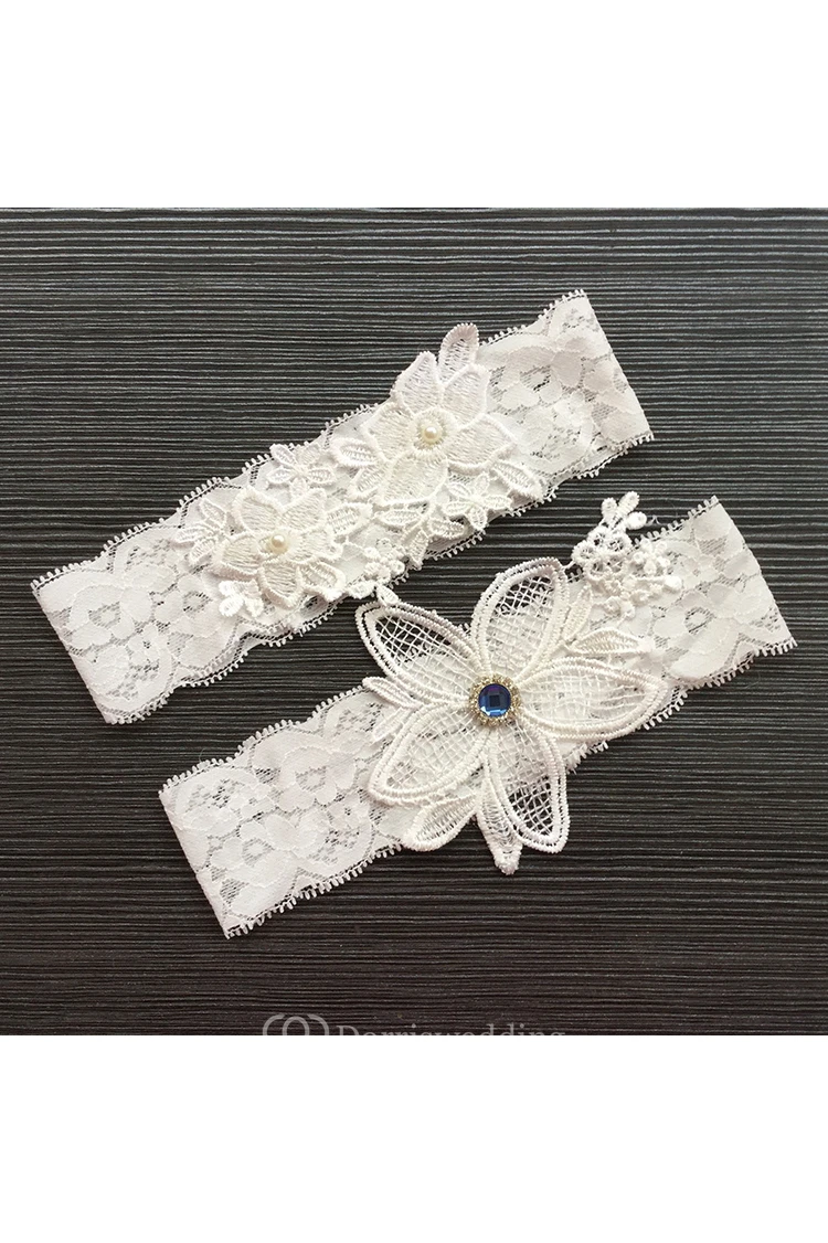 Wide-brimmed Blue Gem Flower Lace Two-piece Elastic Garter Within 16-23inch