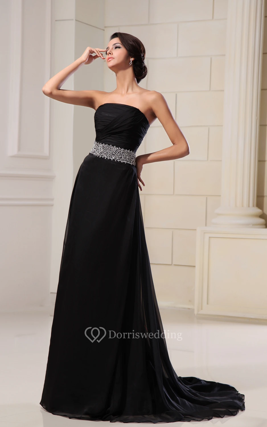Wonderful Scalloped-Neck Chiffon Gown With Sequined Waist